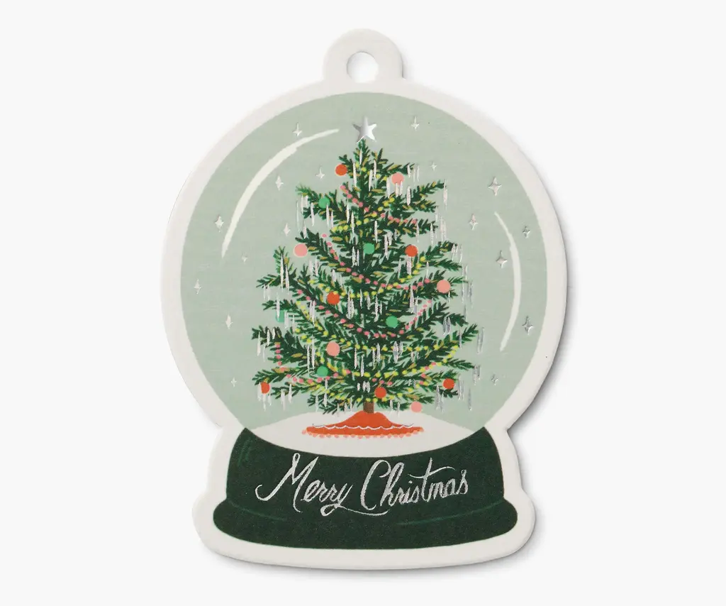 Accessorized impeccably in a glamorous red scarf and jaunty black top hat, this frosty snowman is in his element. The wintry landscape contained in this snow globe Christmas tree ornament features snow-dusted trees and a glittering shower of fluffy snow. The crystal-clear glass globe ensures the idyllic scene is visible from all angles on the Christmas tree. Our snowman snow globe, a Crate and Barrel exclusive, makes a sweet stocking stuffer.