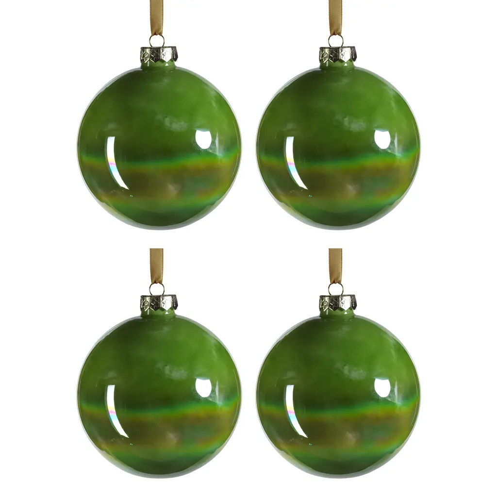 Solid Luster 4.75" Glass Ball Ornaments, Set Of 4 - Green