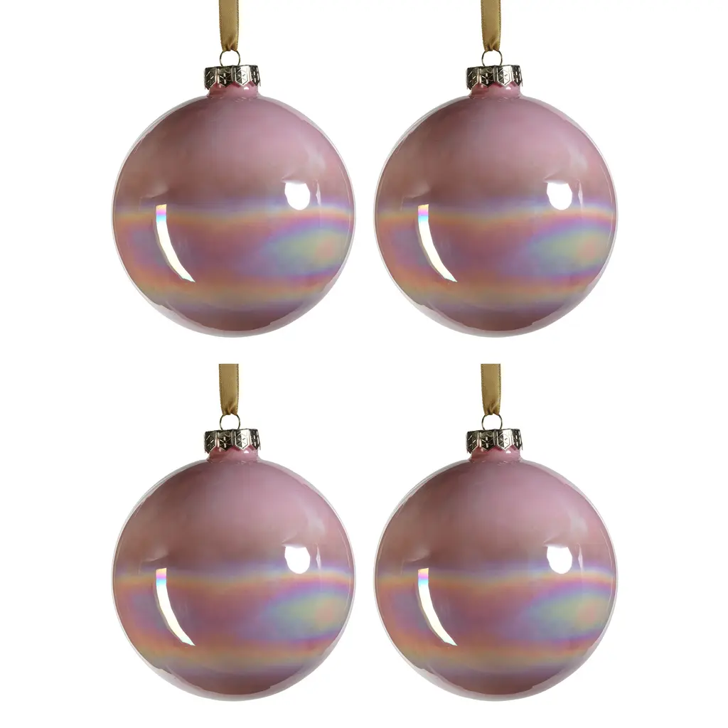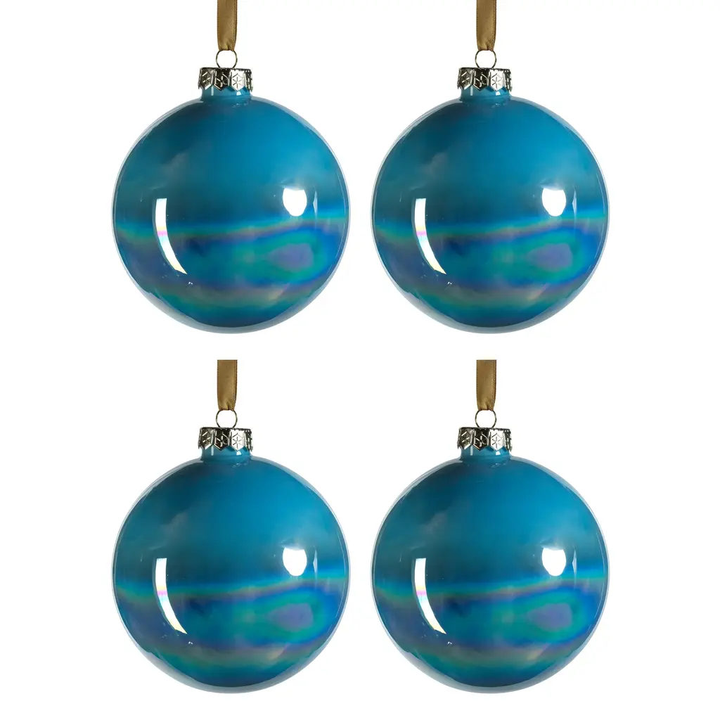 This elegant piece is amazing for any holiday décor. Fully dimensional ornament that has a shiny and glossy finish, giving it a polished and refined appearance. The luster effect enhances the overall visual appeal, making the ornaments stand out and catch the light beautifully. A small cap with metal ring is attached to each round glass decoration for easy hanging on trees, garlands, and wire. Features: Set of 4 ball ornaments of the same color Luster finish for gentle sheen Holiday and everyday hanging ornament Each comes with a string to make it easier to hang Perfect addition to your holiday tree decor