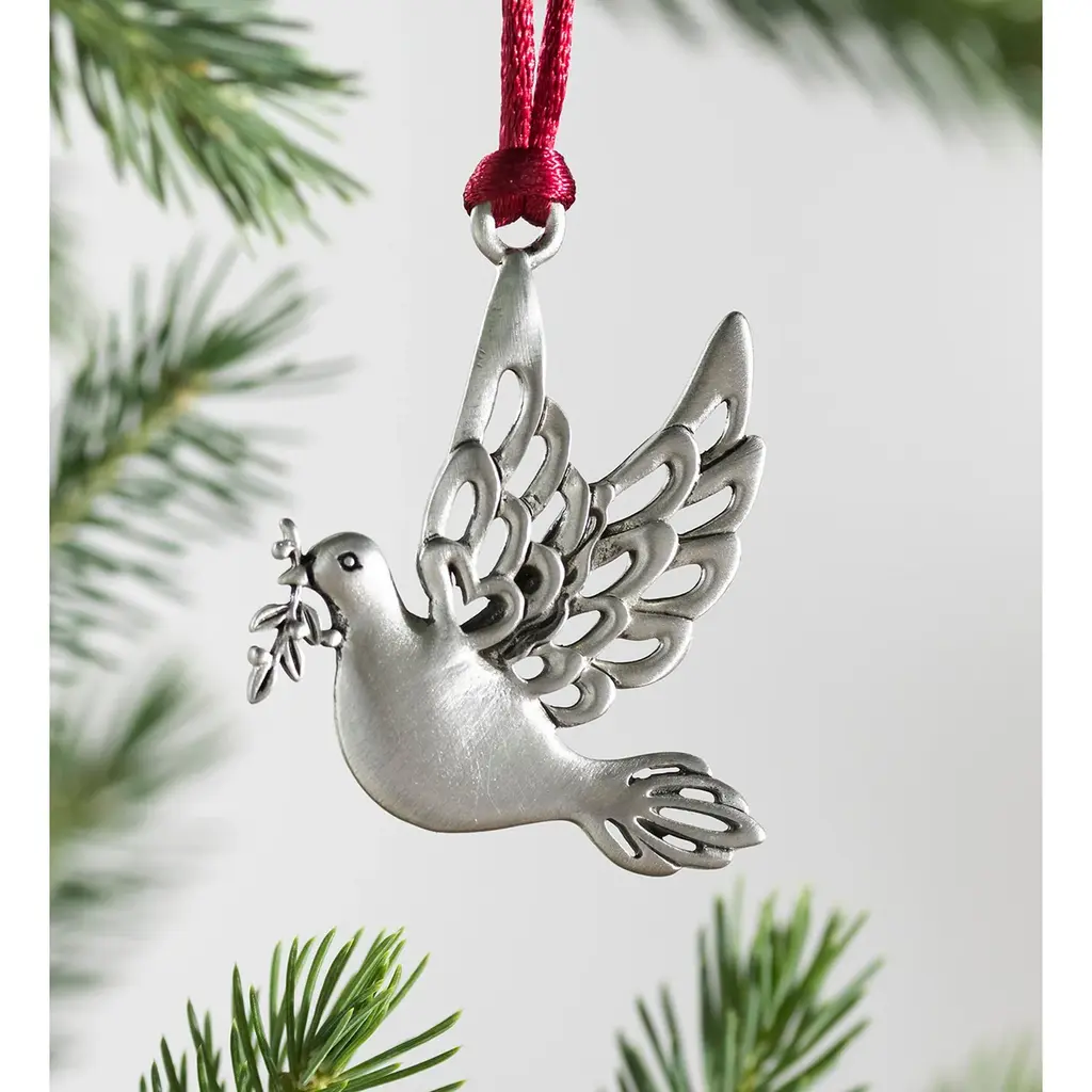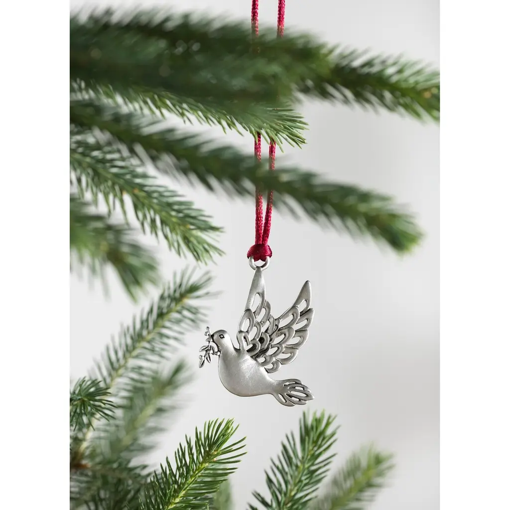 Solid Pewter Christmas Tree Ornament - Dove - Silver