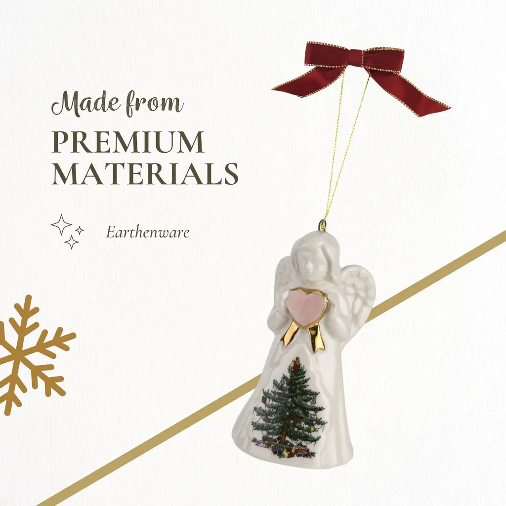 Spode Christmas Tree Angel Ornament, Festive Holiday Bauble for Christmas Tree, Earthenware Hanging Decoration with Red Ribbon for Easy Hanging, Decorative Accent & Keepsake Gift - NewThe Spode Christmas Tree Collection is a versatile, durable, and festive addition to any home. Its timeless design, ease of display, and compatibility with a variety of holiday decorations ensure that it becomes a treasured part of your seasonal decor. Add this charming ornament to your collection today and enjoy its festive beauty throughout the holiday season. Bring festive charm to your home this holiday season with the Spode Christmas Tree Angel Ornament, a delightful addition to your holiday decor collection. As part of the cherished Spode Christmas Tree collection, this ornament features intricate detailing that enhances the beauty of your Christmas decorations, whether it’s hung on your tree, displayed on a shelf, or used as part of a seasonal centerpiece. As part of the Spode Christmas Tree collection, this ornament also serves as a meaningful keepsake, adding a layer of sentiment to your holiday traditions. Its festive and intricate design makes it a collector’s item for those who value traditional holiday decor. It’s a perfect addition to any Christmas display, creating an inviting space for gatherings with family and friends.FEATURES:COLOR:MATERIAL:WHAT'S IN THE BOX:PACKAGING:Retail Packaging