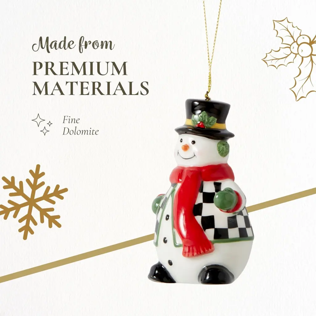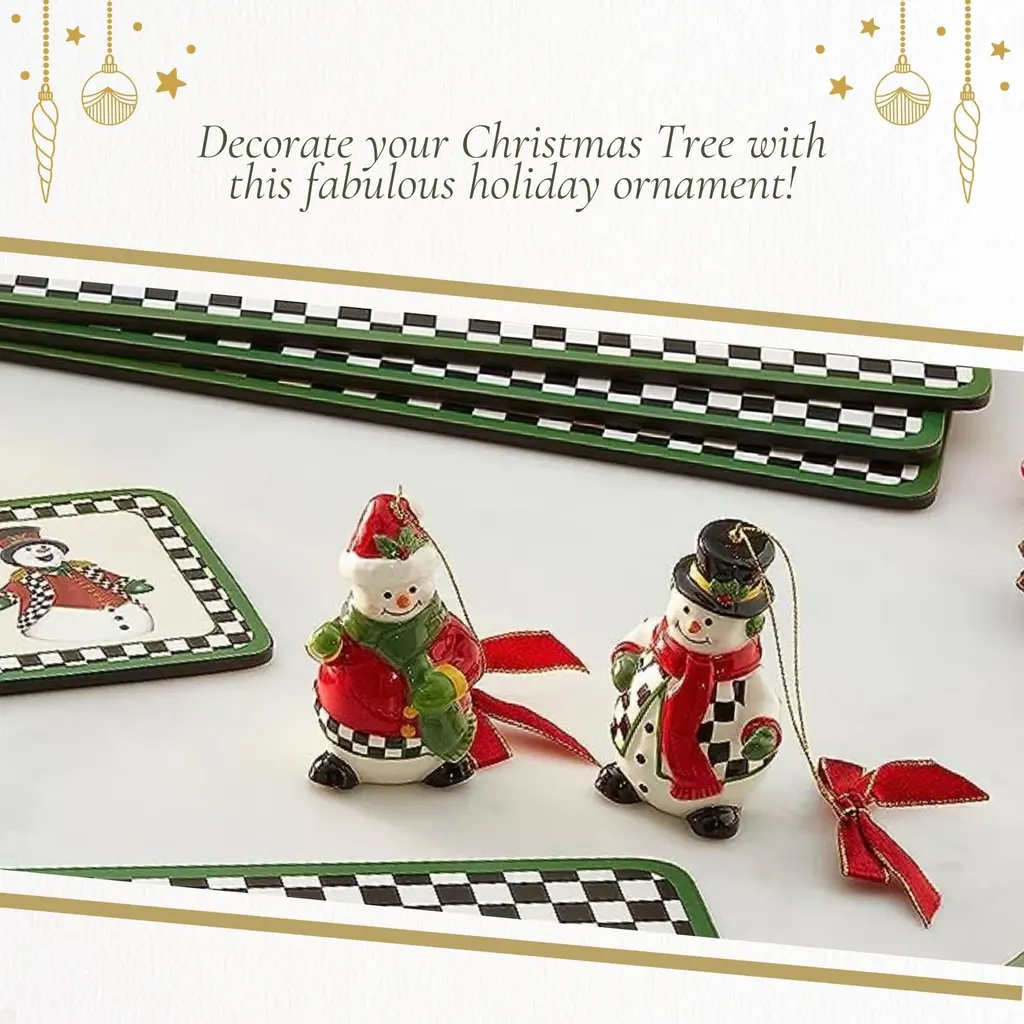 Spode Christmas Tree Black & White Snowman Ornament, Classic Holiday Ornaments, Festive Hanging Decorations - Collectible Christmas Tree Ornaments for Home & Holiday Decor, Keepsake Gift - NewPart of the well-known Spode Christmas Tree collection, this ornament is perfect for mixing and matching with other pieces to create a cohesive and eye-catching display. Whether you're decorating your tree, adding a festive touch to your living room, or simply looking to expand your holiday collection, this ornament is a great choice to elevate your seasonal decor. Make this Christmas even more special with Spode’s classic designs, celebrated for their elegance and timeless appeal. Spode's Christmas Tree Black and White Snowman Ornament evokes a sweet nostalgia and warm recollection of Christmases past. A dapper dresser, this Snowman ornament from the Black & White Collection features a top hat and black and white jacket. Pair with the Snowwoman ornament to create a set. A great ornament for the snowman collector. Whether you're building your own holiday tradition or looking for a new piece to complement your existing Christmas decorations, this ornament is a versatile addition to your home decor. Its craftsmanship ensures that it maintains its vibrant appearance over time, allowing you to enjoy its festive beauty without worry. Looking for a thoughtful gift idea? The Spode Christmas Tree Snowman Ornament is an excellent option for housewarming parties, holiday gatherings, or seasonal celebrations. Its festive charm is sure to be appreciated by anyone who receives it, making it a delightful way to spread holiday cheer.FEATURES:COLOR:MATERIAL:WHAT'S IN THE BOX:PACKAGING:Retail Packaging