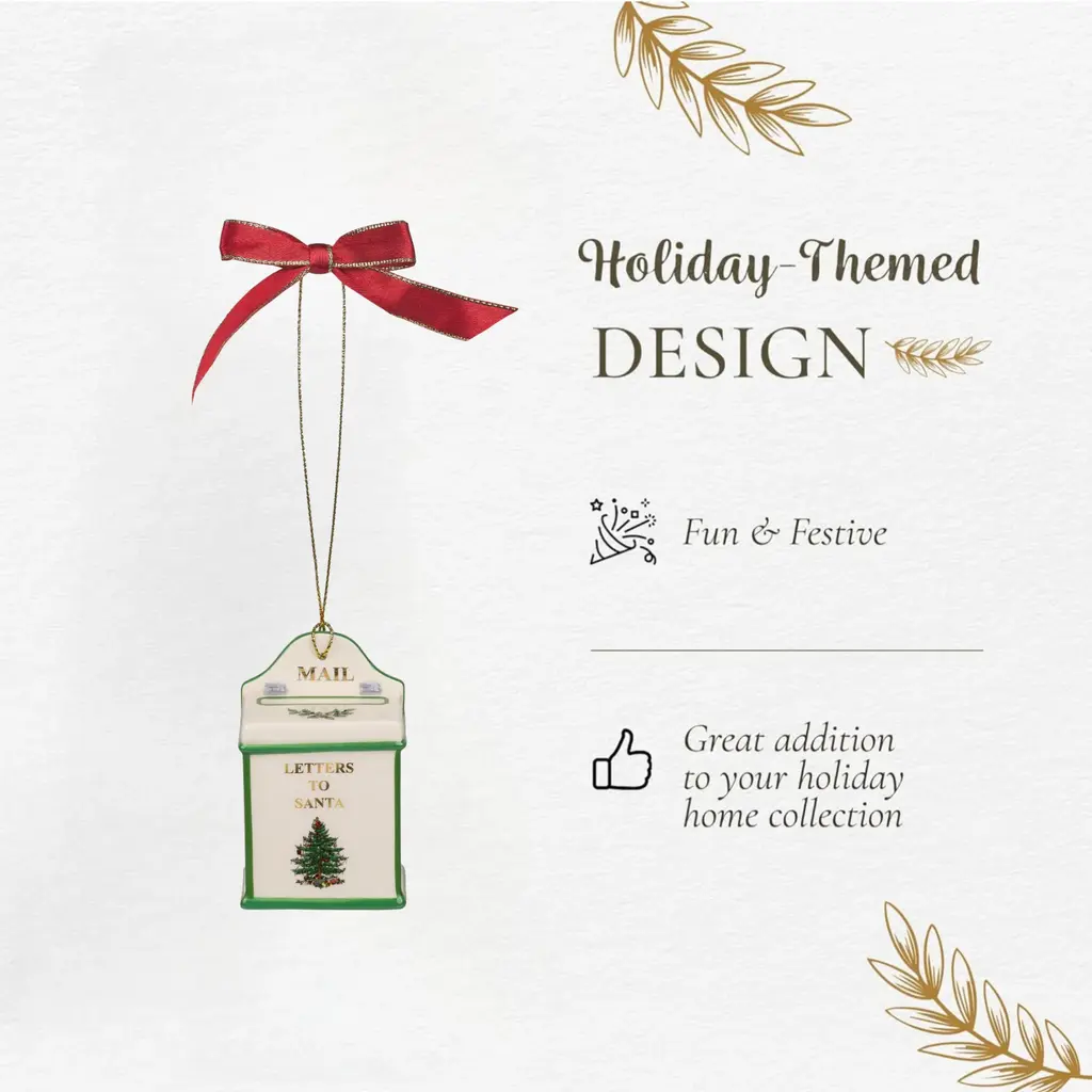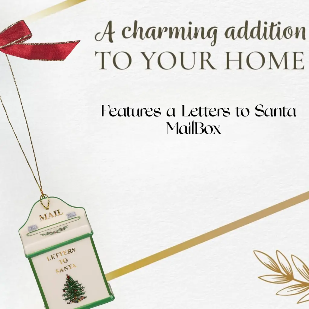 Spode Christmas Tree Letters To Santa Christmas Ornament, Long-Lasting Festive Holiday Ornament for Christmas Tree& Seasonal Display - Stylish Christmas Decoration for Mantel, Shelves, Home Accents - NewThe Spode Christmas Tree Letters To Santa Christmas Ornament adds a touch of elegance to your holiday decor collection, seamlessly blending into various Christmas decoration themes. Whether you prefer a modern holiday decor style or lean toward more traditional seasonal displays, this Christmas tree ornament brings a refined touch to your festive setup. Use it to adorn your Christmas tree, enhance a holiday mantel, or feature it in your winter wonderland display for a polished and stylish accent. The ornament's dolomite construction ensures durability, making it a lasting piece that can be enjoyed season after season. Its sleek design fits effortlessly with a variety of seasonal decorations, providing a sophisticated upgrade to any room in your home. In addition to being a decorative piece, this modern holiday decor piece is a thoughtful gift for those who enjoy collecting Christmas ornaments or creating unique Christmas home decor setups. It can be used as part of a holiday display on shelves or mantels or as a standout piece among your Christmas tree decorations. Whether you're building a festive theme for your home or adding a refined touch to your holiday decorations, the Spode Christmas Tree Letters To Santa Christmas Ornament provides the flexibility and durability needed to enhance your space during the holiday season. Its simple elegance ensures it will be a cherished part of your seasonal decor for many holidays.FEATURES:COLOR:MATERIAL:WHAT'S IN THE BOX:PACKAGING:Retail Packaging