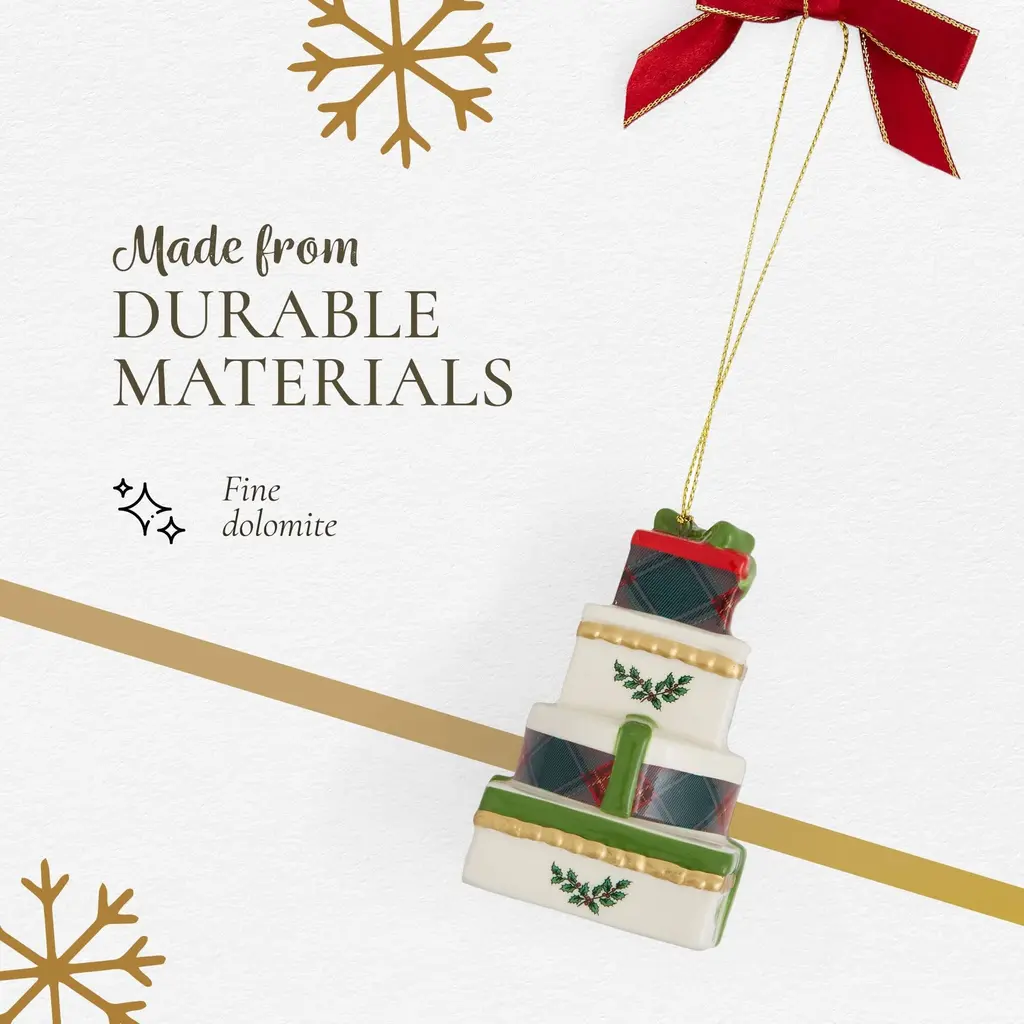 Spode Christmas Tree Tartan Stacking Gifts Ornament - Christmas Tree Decorations with Tartan Plaid, Festive Holiday Ornaments for Christmas Trees, Mantels, Home Displays - Collectible Holiday Decor - NewCelebrate the festive season with the Spode Christmas Tree Tartan Stacking Gifts Ornament, a charming and colorful addition to your holiday décor. This 4-inch ornament features a playful stack of gifts wrapped in bold tartan plaid and adorned with holly accents, capturing the essence of holiday cheer. As part of the beloved Spode Christmas Tree Collection, which has been a favorite among families since 1938, this ornament brings both nostalgia and modern festive flair to your home. The Spode Christmas Tree Tartan Stacking Gifts Ornament is a versatile piece that can be displayed on your Christmas tree, mantel, windowsill, or as part of a holiday centerpiece. Its vibrant colors and festive design add a cheerful atmosphere to any room, whether you're hosting family gatherings or simply enjoying the season at home. This ornament reflects the warmth and joy of Christmases past, making it a meaningful addition to your collection. Crafted from fine dolomite, this holiday ornament is designed to last throughout many holiday seasons, ensuring that it remains a cherished part of your festive displays. The combination of tartan plaid and holly details gives it a unique and festive look that stands out, yet blends easily with other Christmas tree decorations. Whether your style leans traditional or modern, this ornament offers a delightful touch that complements a wide range of holiday décor.FEATURES:COLOR:MATERIAL:WHAT'S IN THE BOX:PACKAGING:Retail Packaging