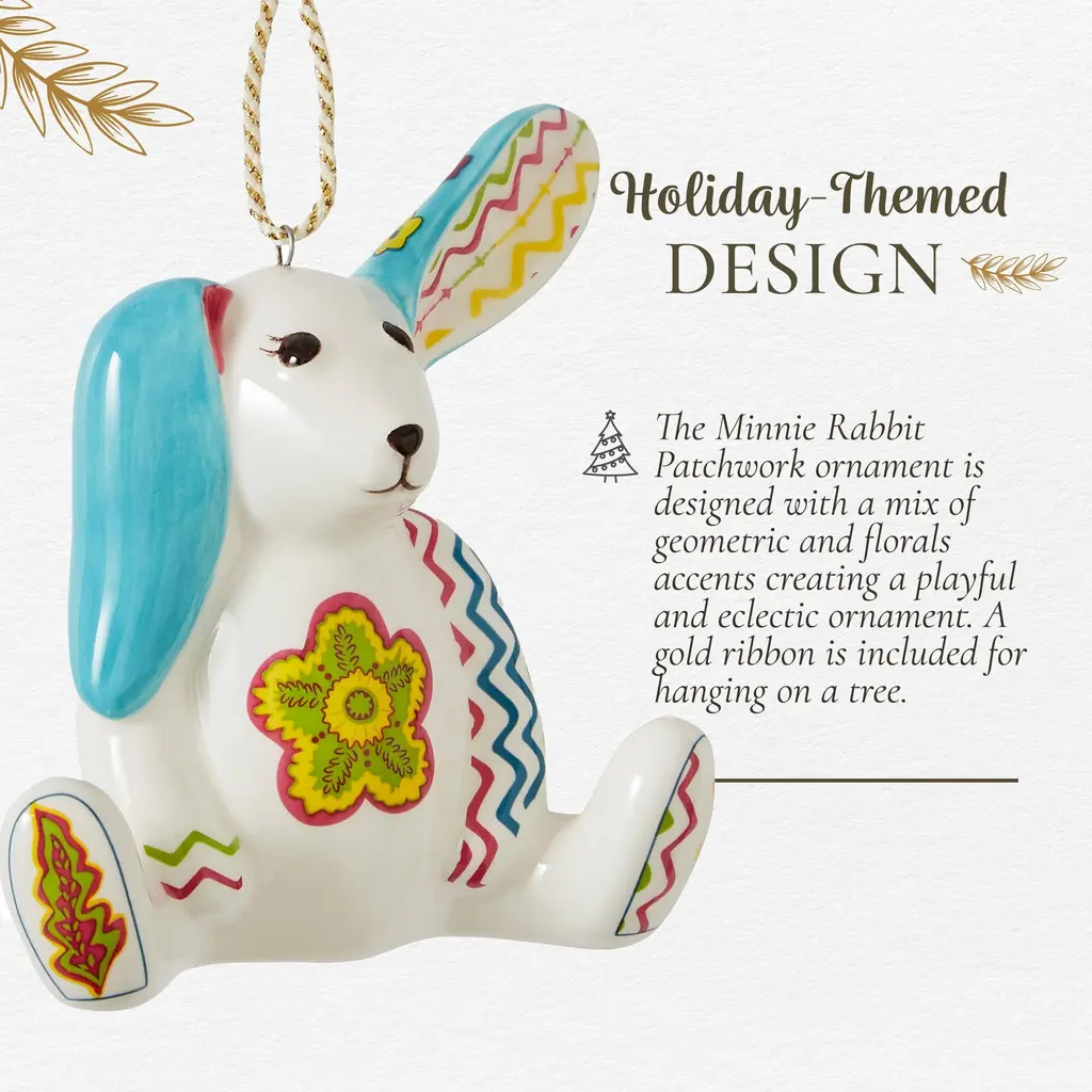 Spode Kit Kemp Christmas Minnie Rabbit Patchwork Ornament - 3.5" H - Multi