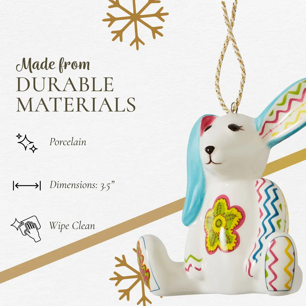 Spode Kit Kemp Christmas Ornament | Minnie Rabbit | 3.5" | Porcelain | Handcrafted Festive Charm | Perfect for Holiday Decorating | Collectible Keepsake for Years to Come - NewWelcome to the enchanting world of the Kit Kemp Collection by Spode, where timeless tradition meets contemporary elegance. Whether gracing your tree or on the mantel display, these ornaments are sure to spark joy and conversation. Elevate your holiday celebrations with the Kit Kemp Collection by Spode, where every piece embodies the perfect blend of tradition and contemporary charm. This whimsical ornament from the Christmas Doodles collection is inspired by Kit’s collection of lovable patchwork animals created from off cuts and recycled fabrics. The Minnie Rabbit Patchwork ornament is designed with a mix of geometric and florals accents creating a playful and eclectic ornament. A gold ribbon is included for hanging on a tree. Versatile and delightful, it's not just for the tree – it makes a perfect addition to any holiday gift. Packaged in a beautiful gift box, it's a thoughtful present for friends and family, sure to elevate their festive celebrations. Experience the magic of the Kit Kemp Collection by Spode and bring joy to your holiday season.FEATURES:COLOR:MATERIAL:WHAT'S IN THE BOX:PACKAGING:Retail Packaging