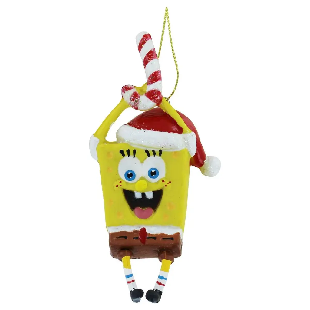 The SpongeBob Squarepants ornament from Kurt Adler is a wonderful additions to your holiday décor. This ornament features SpongeBob wearing red and gold glittery square pants and black shoes with a delightful smile on his face and deer antennas on his head.