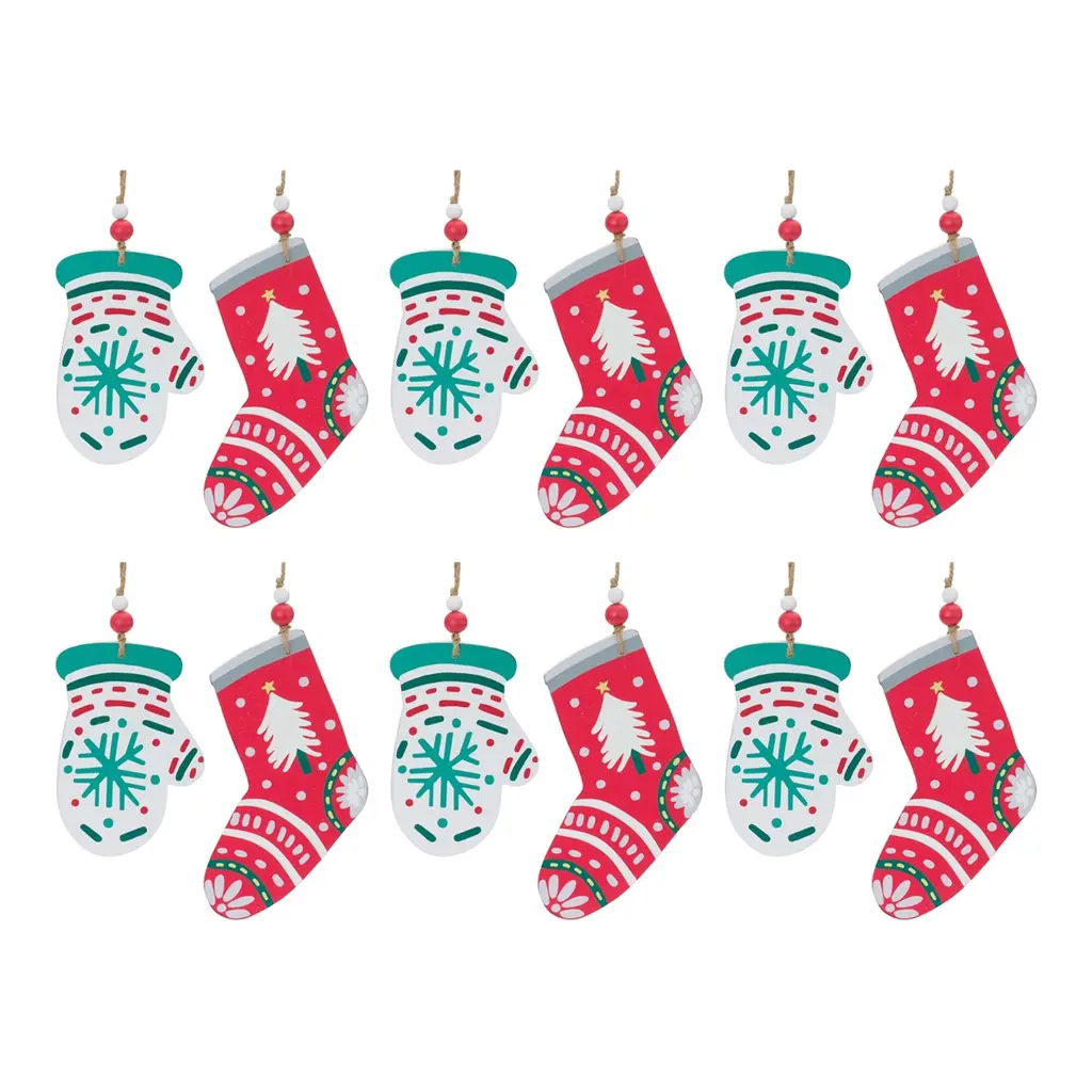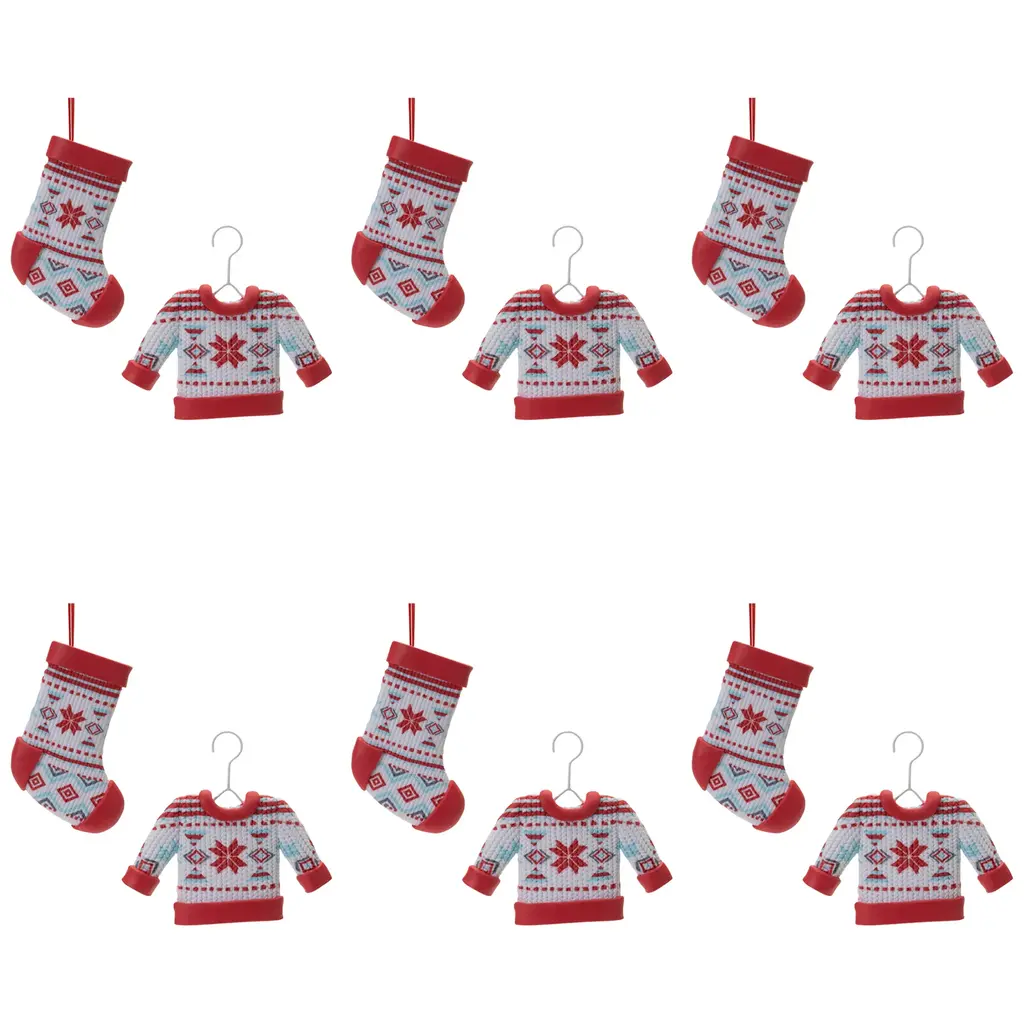 Stocking And Mitten Ornament (Set Of 12) 6"h, 8.5"h Polyester - 3.5 X 1.25 X 8.5 / 3.25 X 1.25 X 6" (L X W X H) - White/red