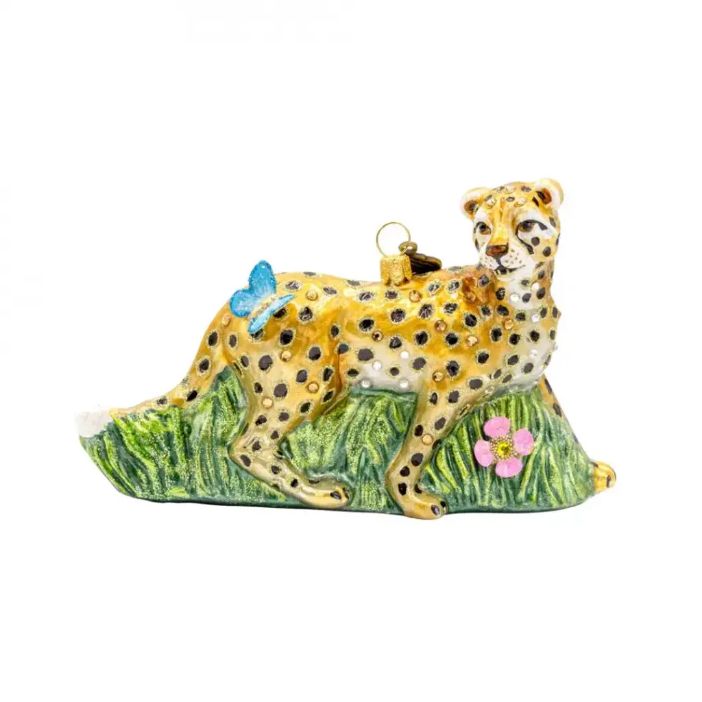 Our Striped Blossom Ornament beautifully captures the essence of the safari. It highlights a majestic zebra amidst verdant grass, brought to life with vibrant flowers and a delicate butterfly.