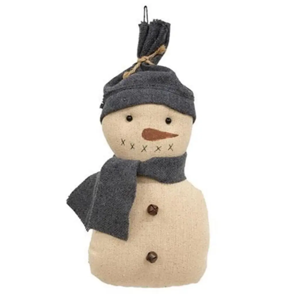 Stuffed Primitive Singing Snowgirl Ornament - 3" H X 3" W X 1.5" D - White