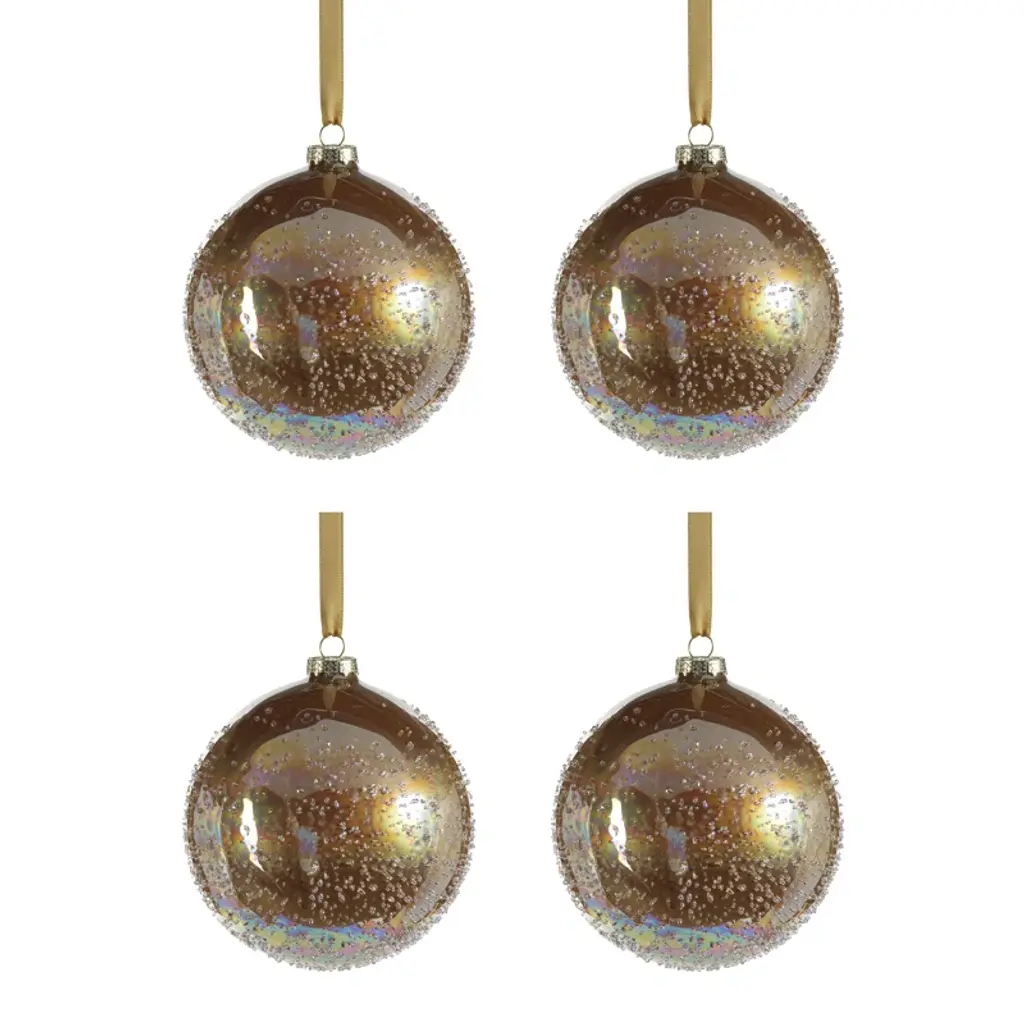 Textured Metallic Glass Christmas Tree Ornaments 5" Set Of 4