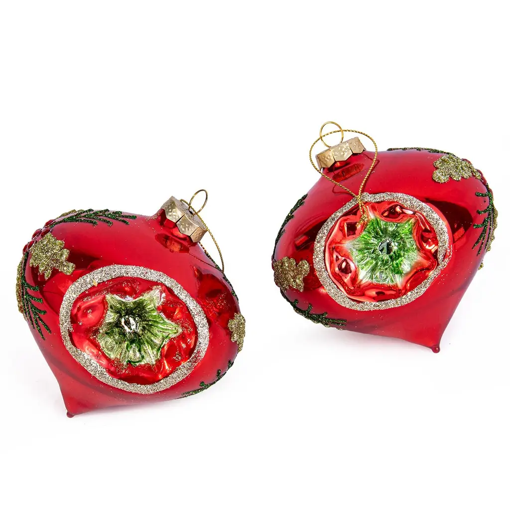 Transpac Glass Mushrooms In Acorn Ornament Set Of 2 Christmas Home Decorations - Multicolor - Glass