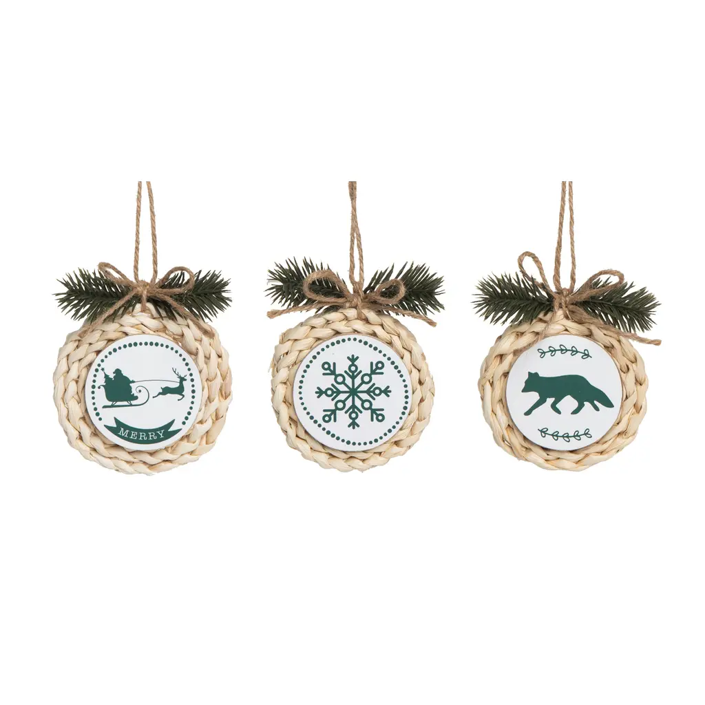 Transpac Grass Woven Icon Ornament Set Of 3 Christmas Home Decorations - Multicolor - Wood
