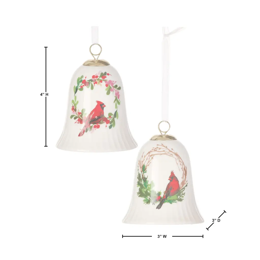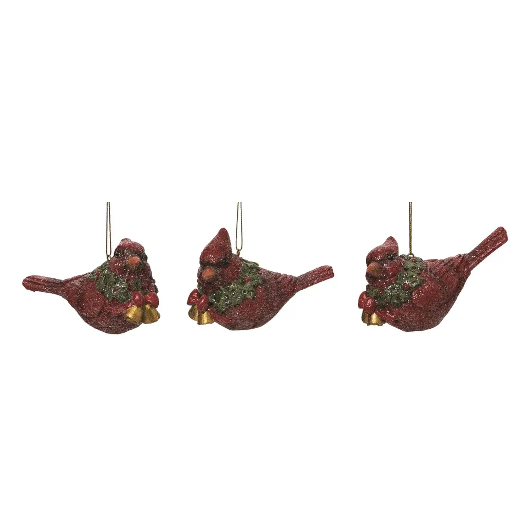 Transpac Resin Bird & Bell Ornament Set Of 3 Christmas Home Decorations - Plastic - Multi