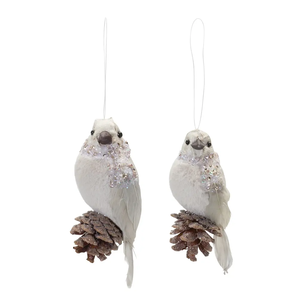Transpac Resin Bird On Pinecone Ornament Set Of 3 Christmas Home Decorations - Plastic - Multi