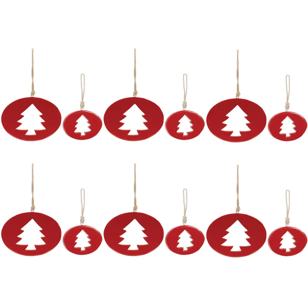 Specification:Description:Add a woodland touch to your Christmas tree with this stunning set of Pine Tree Cut-Out Ornaments. Featuring 12 pieces and two assorted sizes, the festive Red / White finish paired with the traditional tree cut-out design are the perfect combination to create a memorable dipslay. The quality solid wood composition with natural jute string hanger is sure to endure for seasons to come. Whether you're adding a touch of cheer to your home or gifting to a loved one, these ornaments will definitely bring holiday spirit to your home.