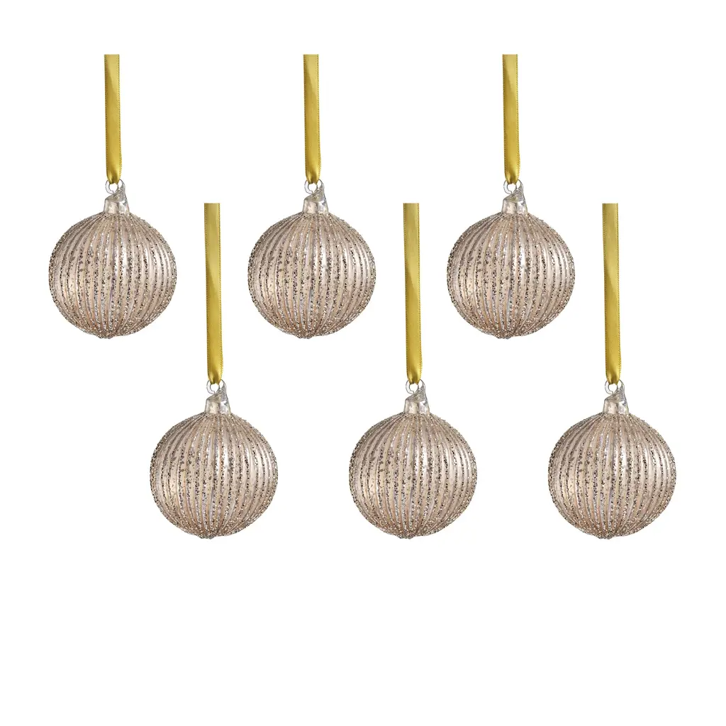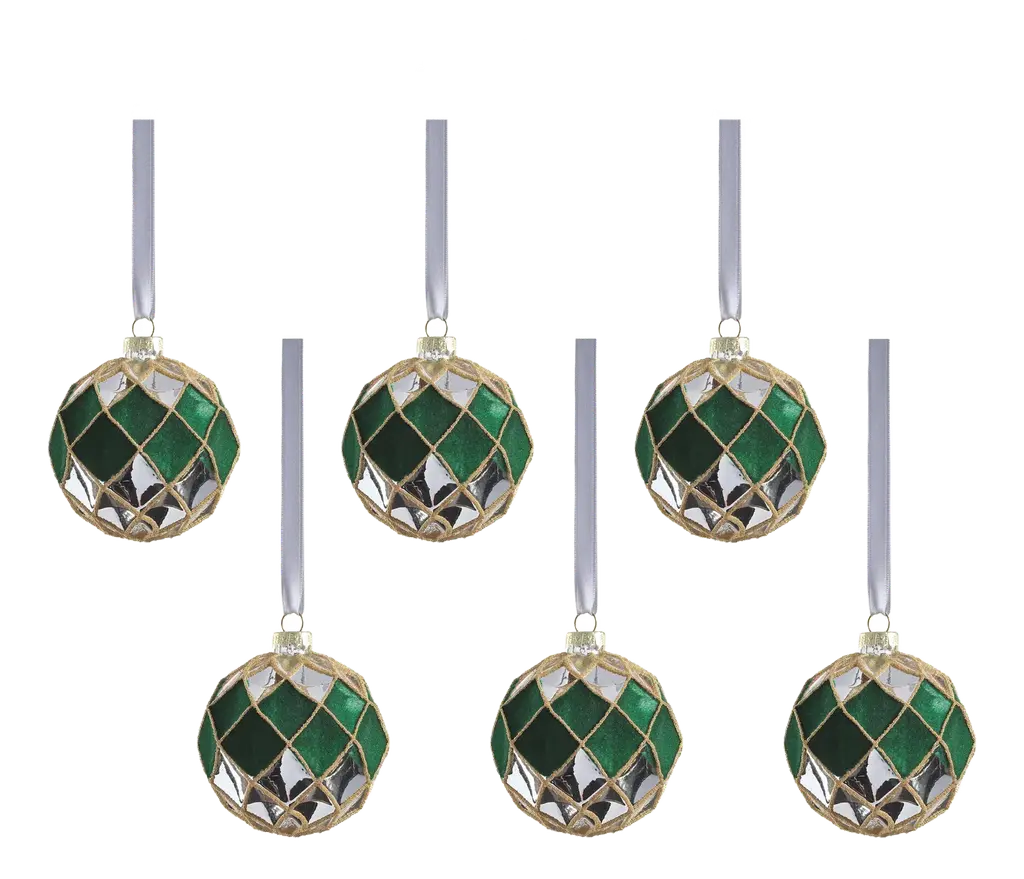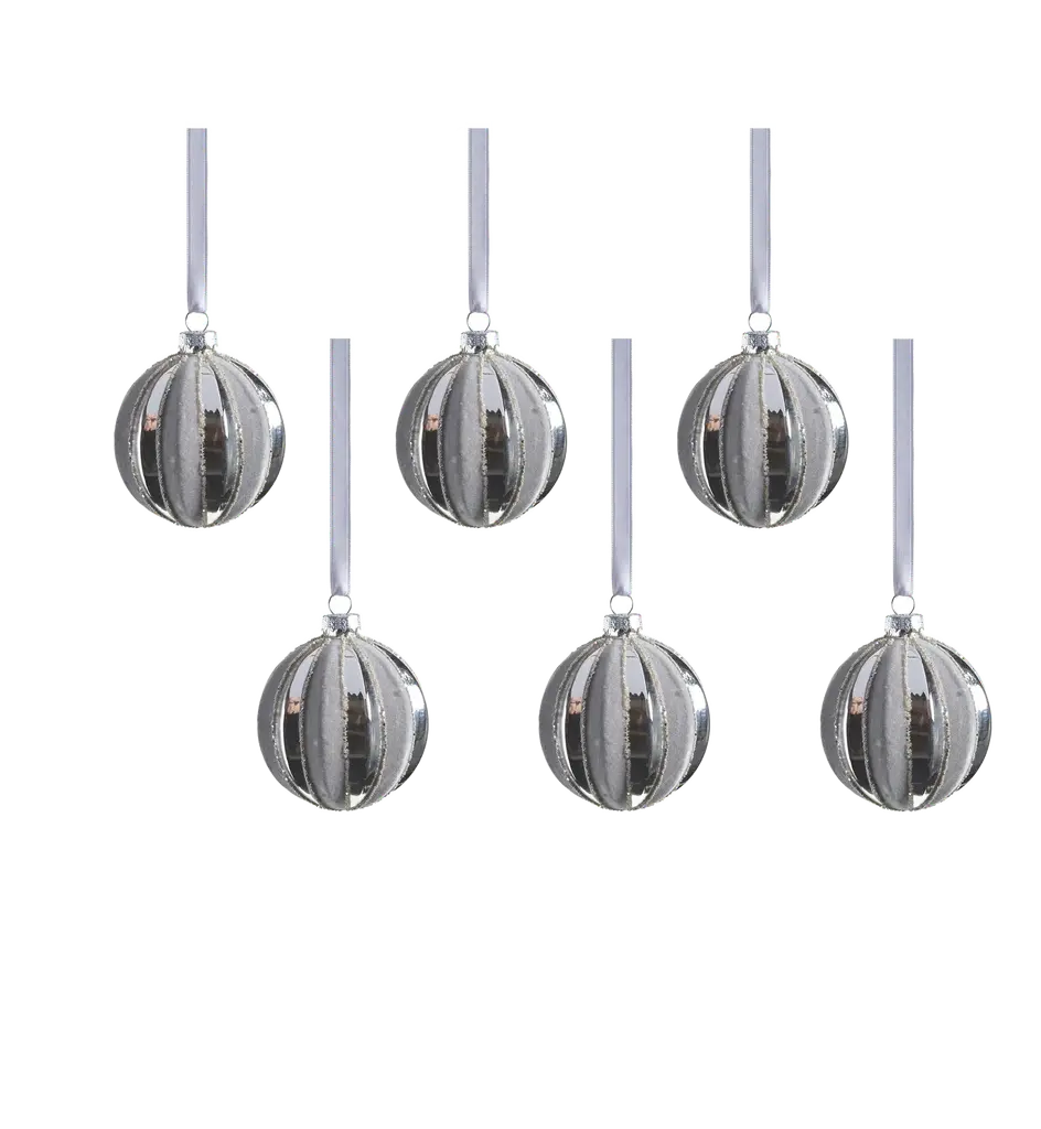 Introduce a contemporary flair to your holiday decor with the Trieste Metallic Chevron Glass Ball Ornaments. These stylish ornaments feature a sleek metallic shiny finish that adds a modern touch to any setting. The embossed zigzag pattern enhances their visual appeal, creating a dynamic and textured look. Perfect for your Christmas tree or as decorative accents, the Trieste Metallic Chevron Glass Ball Ornaments will infuse your festive season with elegance and sophistication. Features: Set of 6 hanging ornaments of the same size Metallic finish Glittered chevron pattern Equipped with ornament cap Comes ready to hang Perfect addition to your Christmas tree decor