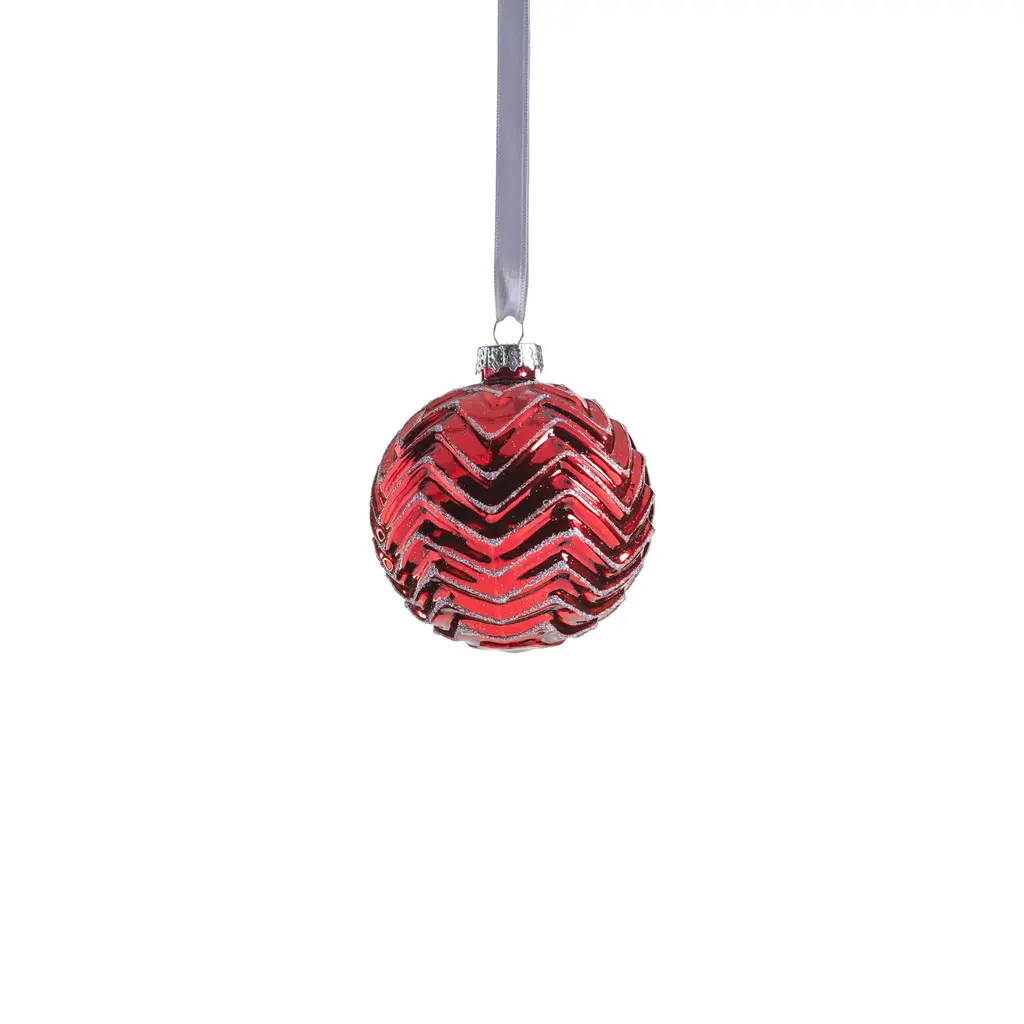 Trieste Metallic Chevron 3.25" Glass Ball Ornaments, Set Of 6 - Red