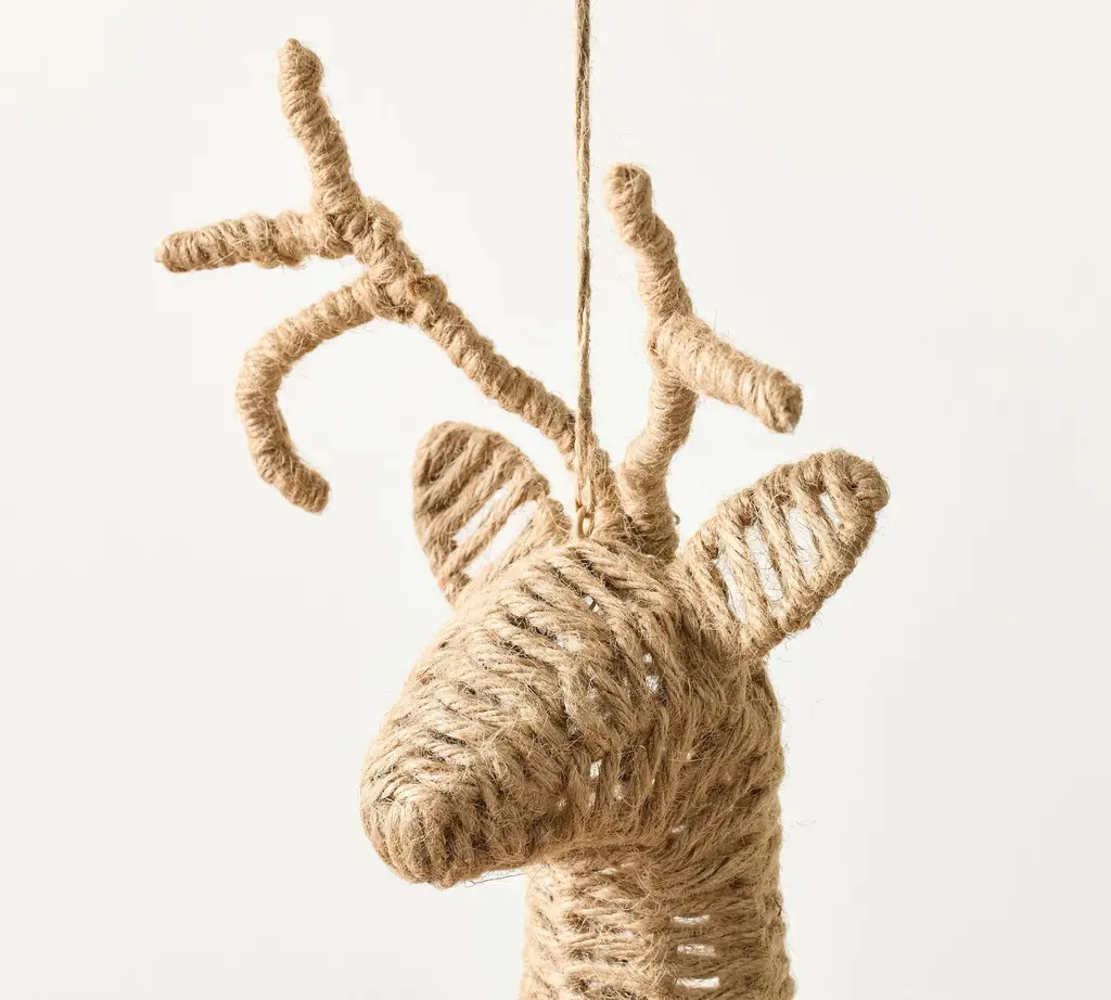 Weave a herd of our sculptural stags' heads through the boughs of your tree or make one the heart of a seasonal centerpiece. This rustic ornament is crafted from natural jute to add a soft, organic look to the tree, ideal for balancing colorful, sparkling decor.