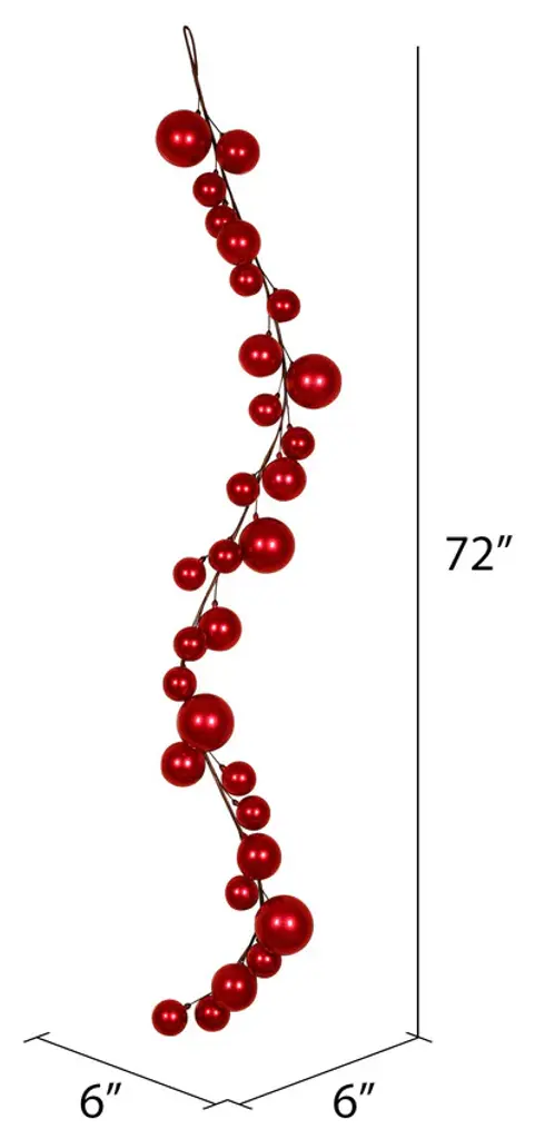 Vickerman 6'' Red Candy Christmas Ball Ornament Garland. Brighten up your holiday d�cor with this eye-catching ornament garland. This brilliant garland features a brown wrapped, flexible wire spine and candy finished ball ornaments made of shatterproof plastic