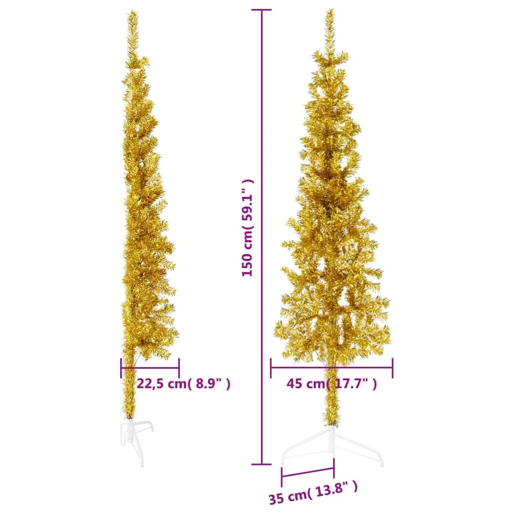 Vidaxl Christmas Tree Decoration Slim Artificial Half Xmas Tree With Stand - 5 Foot - Gold