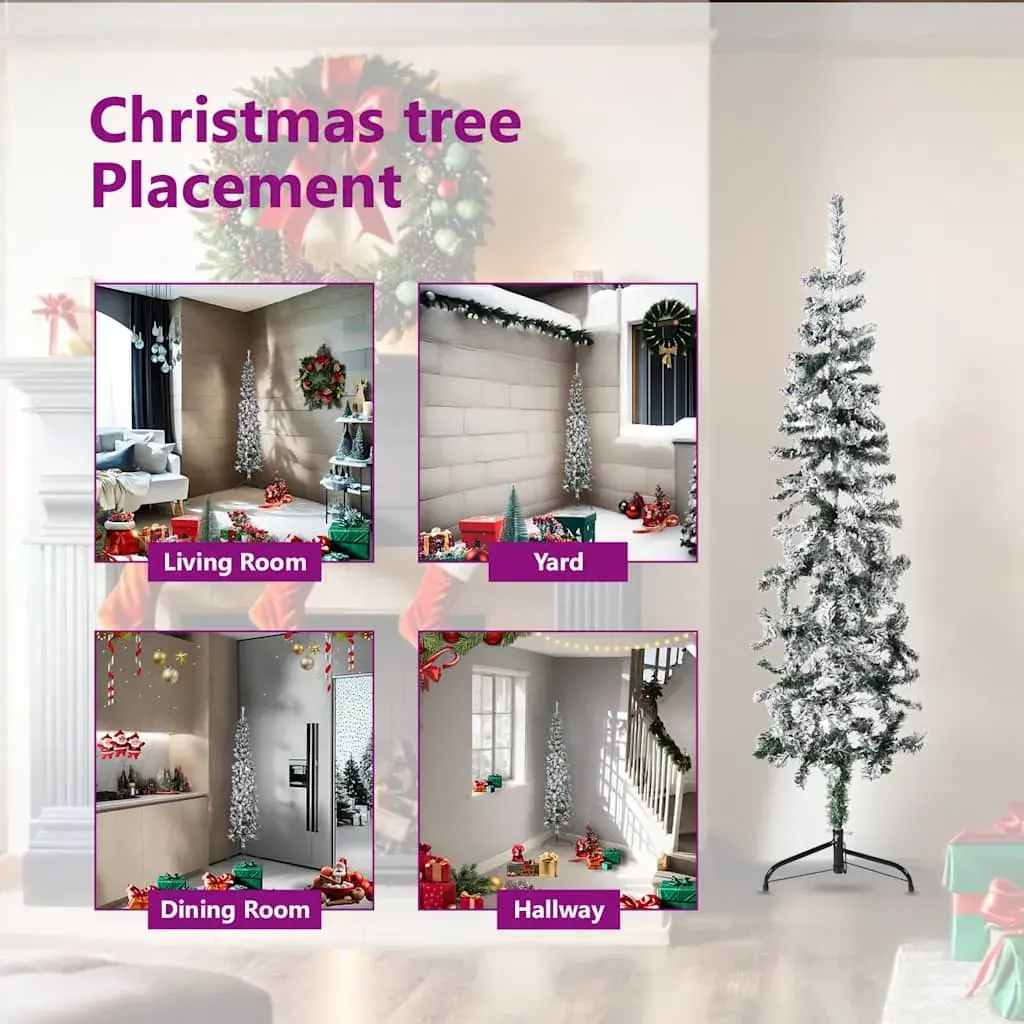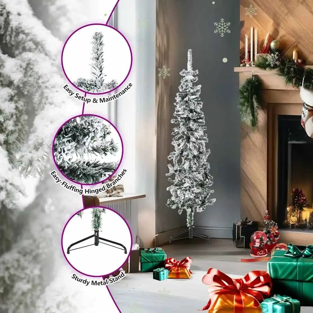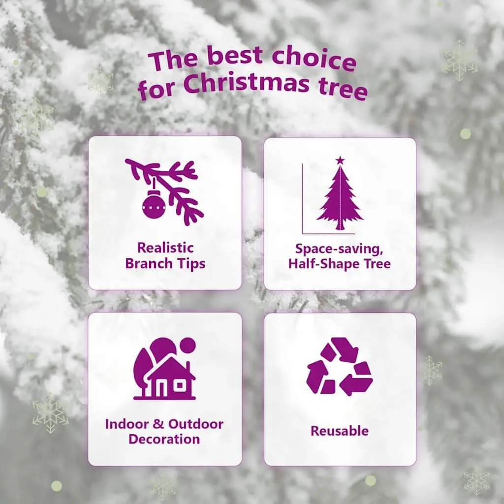 This artificial half Christmas tree with flocked white snow is an ideal choice for any space in need of a splash of Christmas merriment.Lifelike material: This beautiful Christmas tree, made of PVC material, is very lifelike in its shape and appearance.Space-saving Xmas tree: This slim Christmas tree can be placed against the wall to save more space. It is a great choice if you have limited space.Flocked snow design: The flocked white snow on the needles adds to this slim Xmas tree's elegance.Economical holiday decoration: The Christmas tree can be used again every year, making it a very economical choice compared to a real tree.