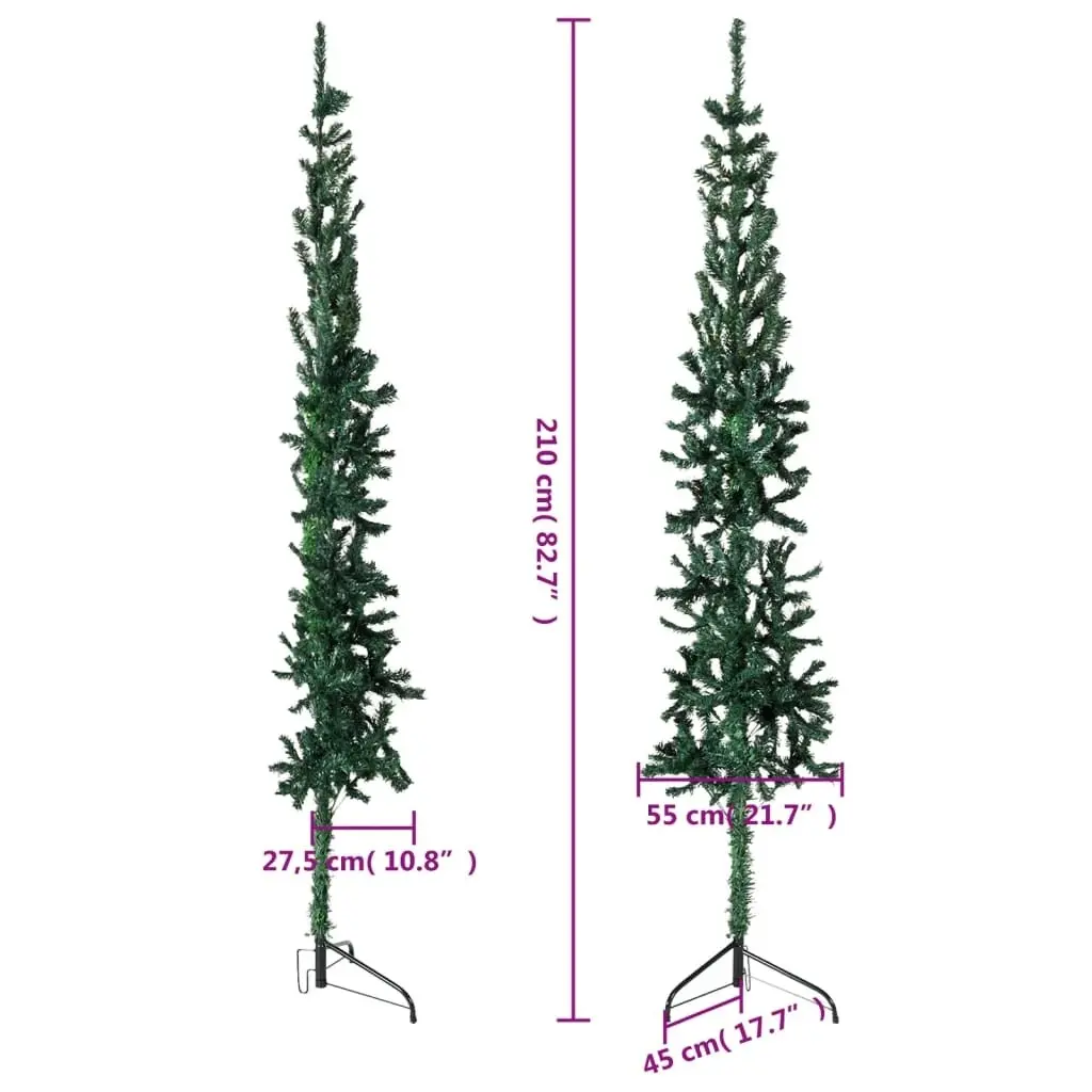 Vidaxl Christmas Tree Decoration Slim Artificial Half Xmas Tree With Stand - 7 Foot - Green
