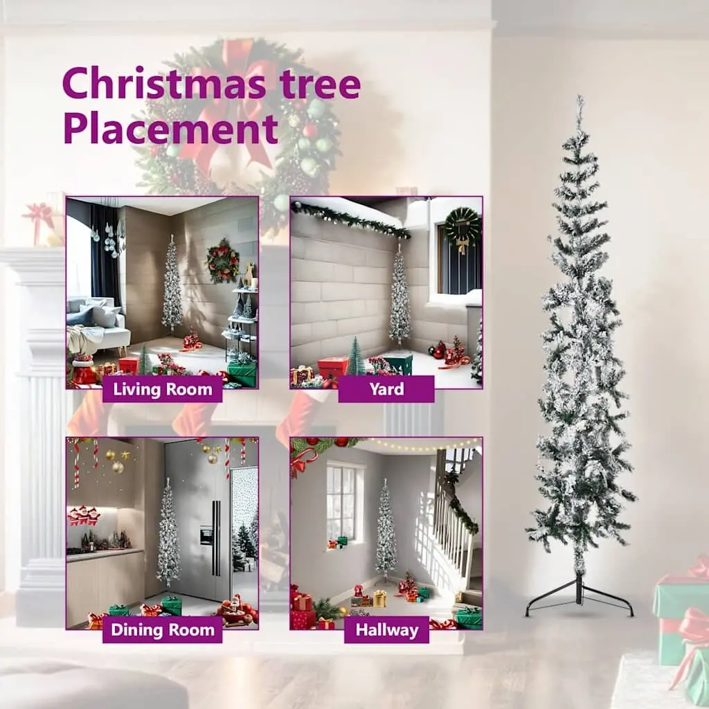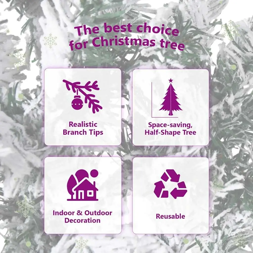 This artificial half Christmas tree with flocked white snow is an ideal choice for any space in need of a splash of Christmas merriment.Lifelike material: This beautiful Christmas tree, made of PVC material, is very lifelike in its shape and appearance.Space-saving Xmas tree: This slim Christmas tree can be placed against the wall to save more space. It is a great choice if you have limited space.Flocked snow design: The flocked white snow on the needles adds to this slim Xmas tree's elegance.Economical holiday decoration: The Christmas tree can be used again every year, making it a very economical choice compared to a real tree.