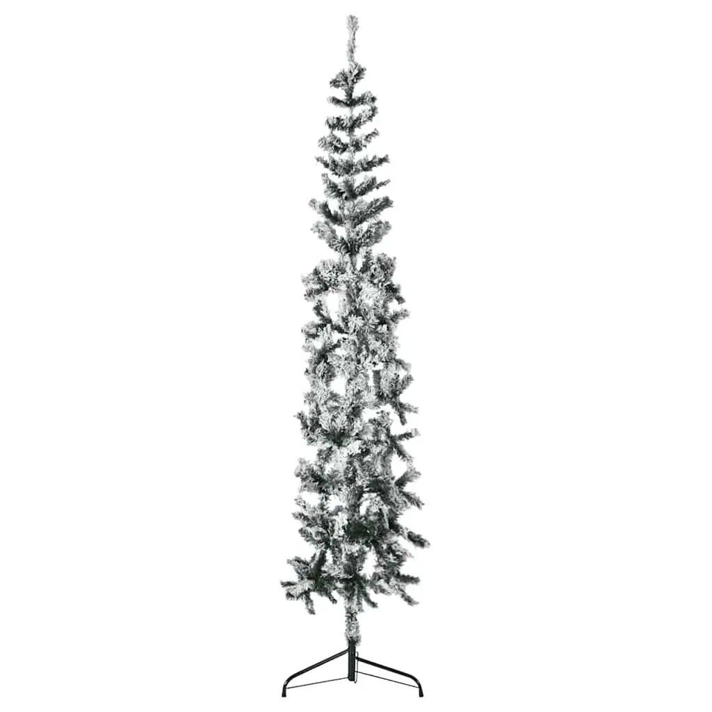 Vidaxl Christmas Tree Decoration Slim Artificial Half Xmas Tree With Stand - 8 Foot - Green/white
