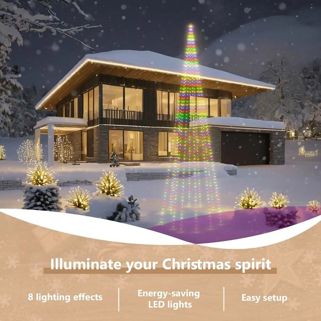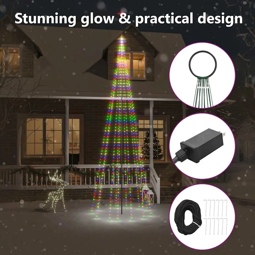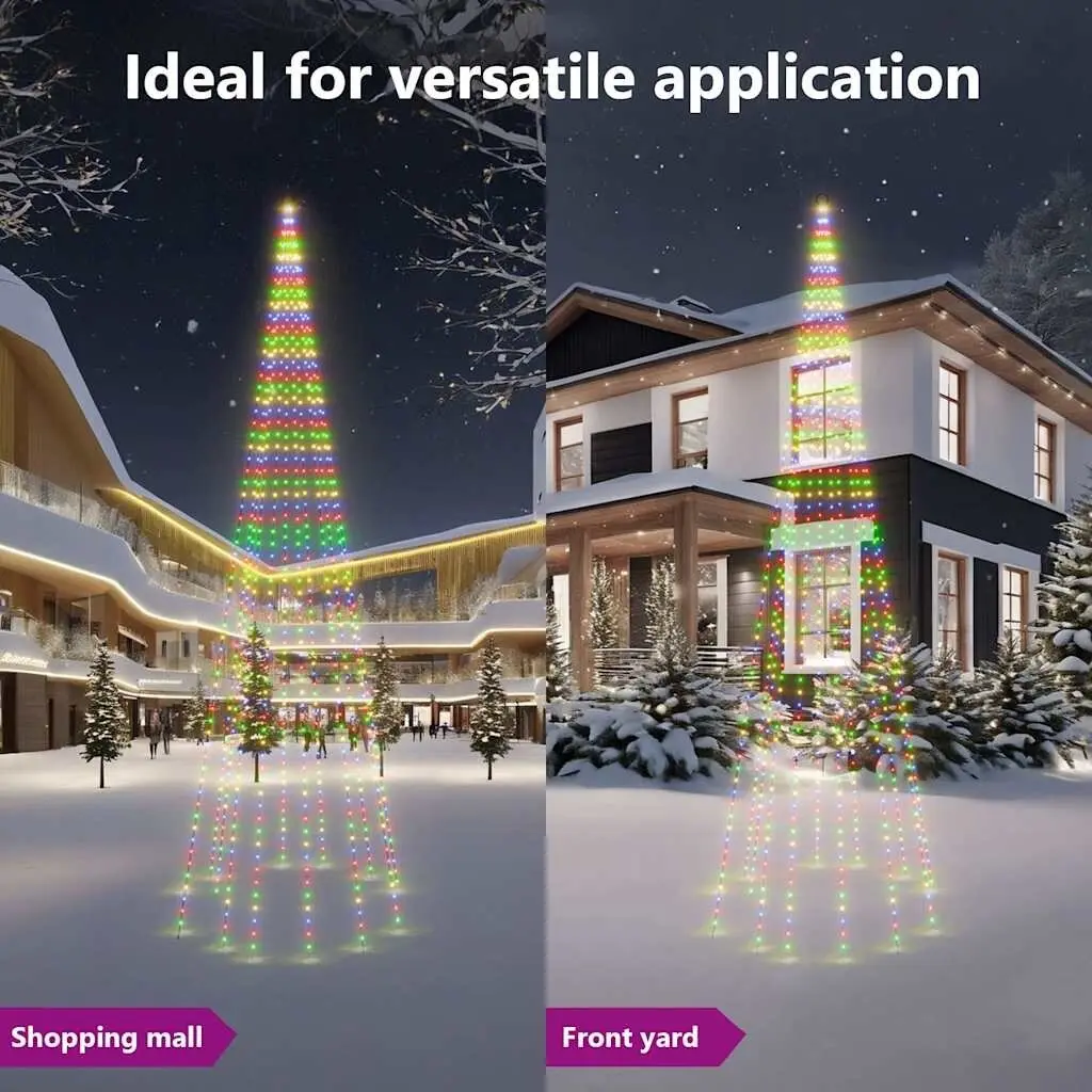 Vidaxl Christmas Tree On Flagpole Xmas Light Display Decoration Holiday Ornament - Colorful 732 Leds