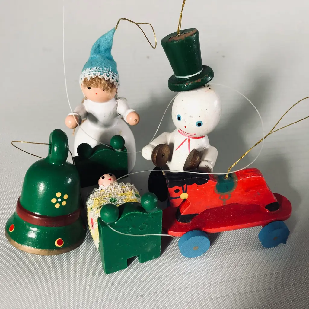 Vintage Brinn's Wooden Christmas Ornaments - Set Of 5