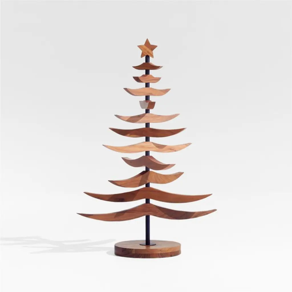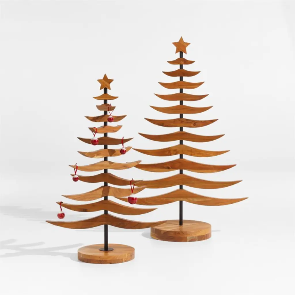 Create a winter wonderland on your fireplace mantel, buffet or dining room table with our ornament tree. Crafted by artisans, the Scandinavian-inspired evergreen threads acacia wood branches on a black iron upright topped with a sweet star. Display the tree on its own, paired with its smaller counterpart or festooned with favorite ornaments. Rotate the limbs to create your ideal arrangement. Our large Tannenbaum ornament tree is a Crate and Barrel exclusive.By choosing FSC ®-certified furniture, you are supporting responsible management of the world's forests.