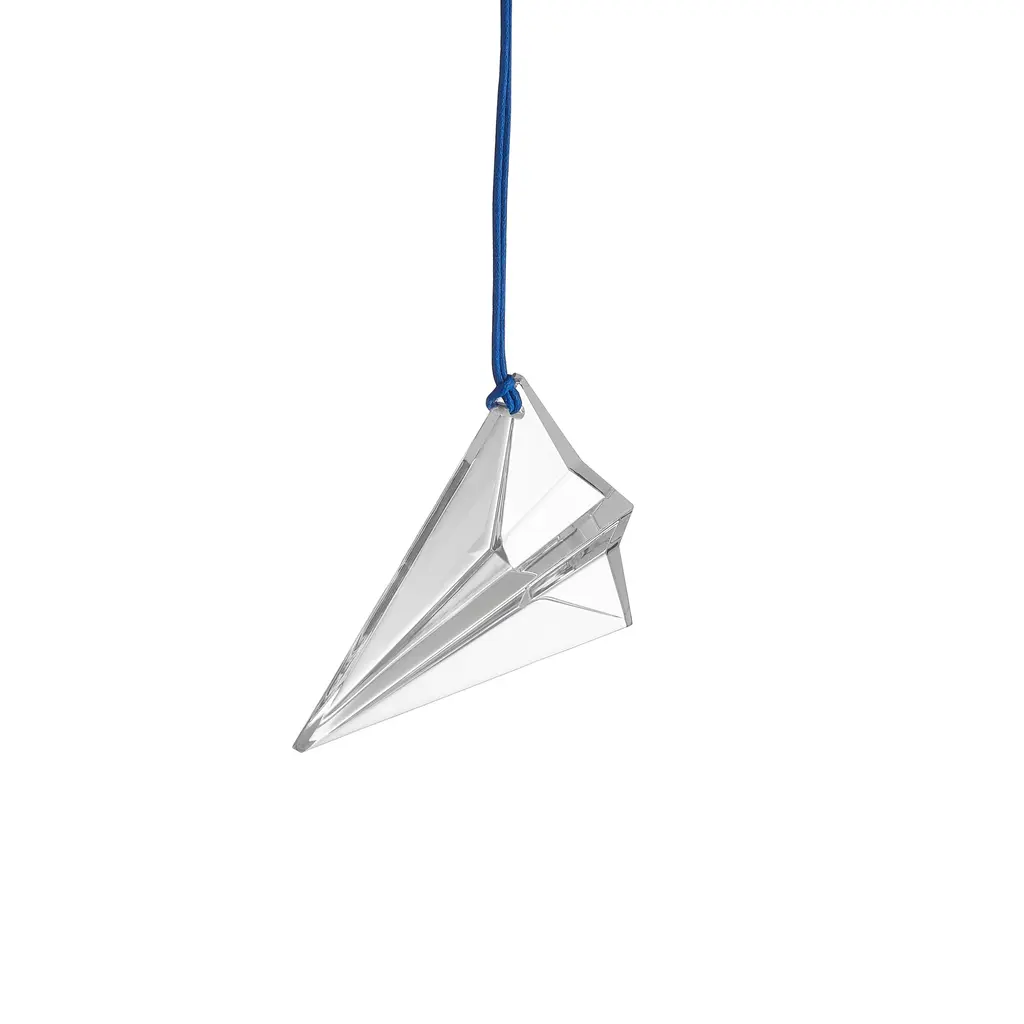 This Aeroplane ornament, with a design inspired by Origami art, features glistening crystal cuts in a contemporary linear pattern to mimic the paper folds of a plane, designed to capture your imagination and the twinkling lights of your Festive tree and home. Finished with a sleek and elegant blue rope-tie marked, this beautiful ornament is the perfect gift to commemorate another festive season.