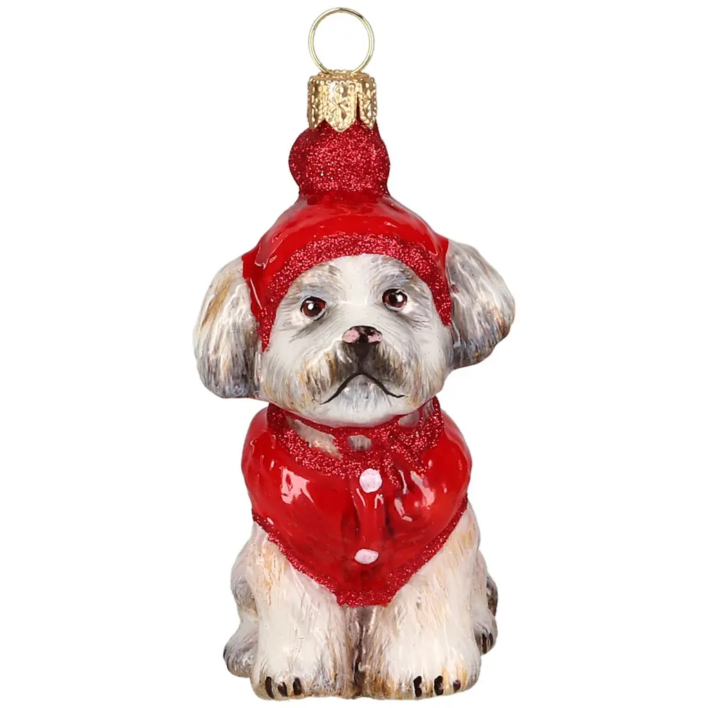 A charming addition to the tree, this Westie ornament is handcrafted of mouth-blown glass and hand-painted by artisans in Poland.