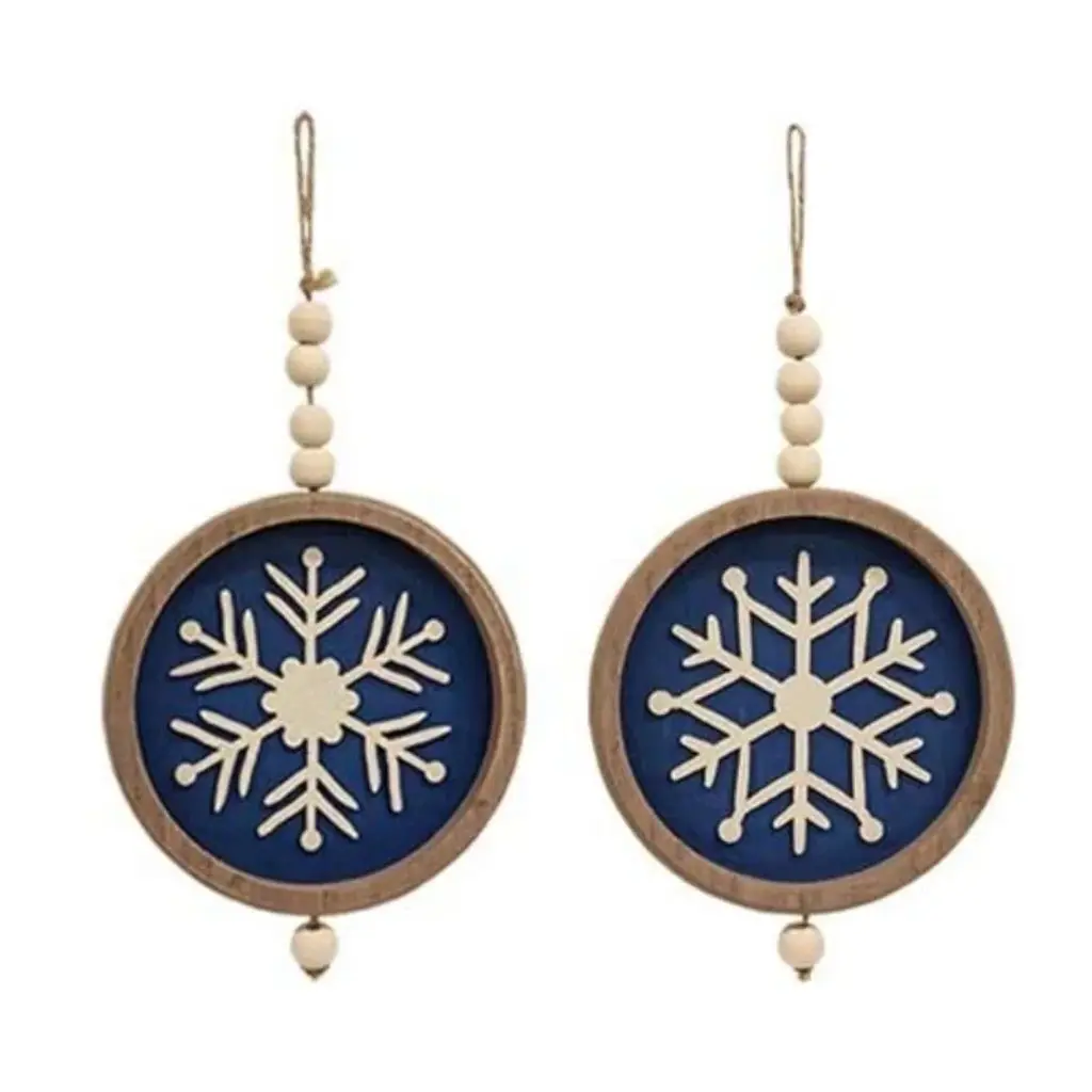 White Snowflake Wood Beaded Ornament 4 Asstd. - 5.75" High By 5.75" Wide And .25" Deep - Natural And White