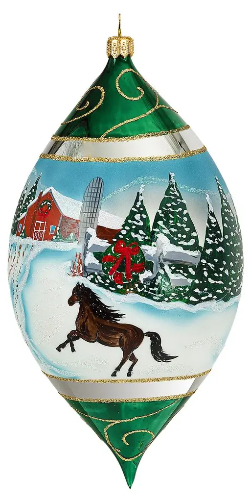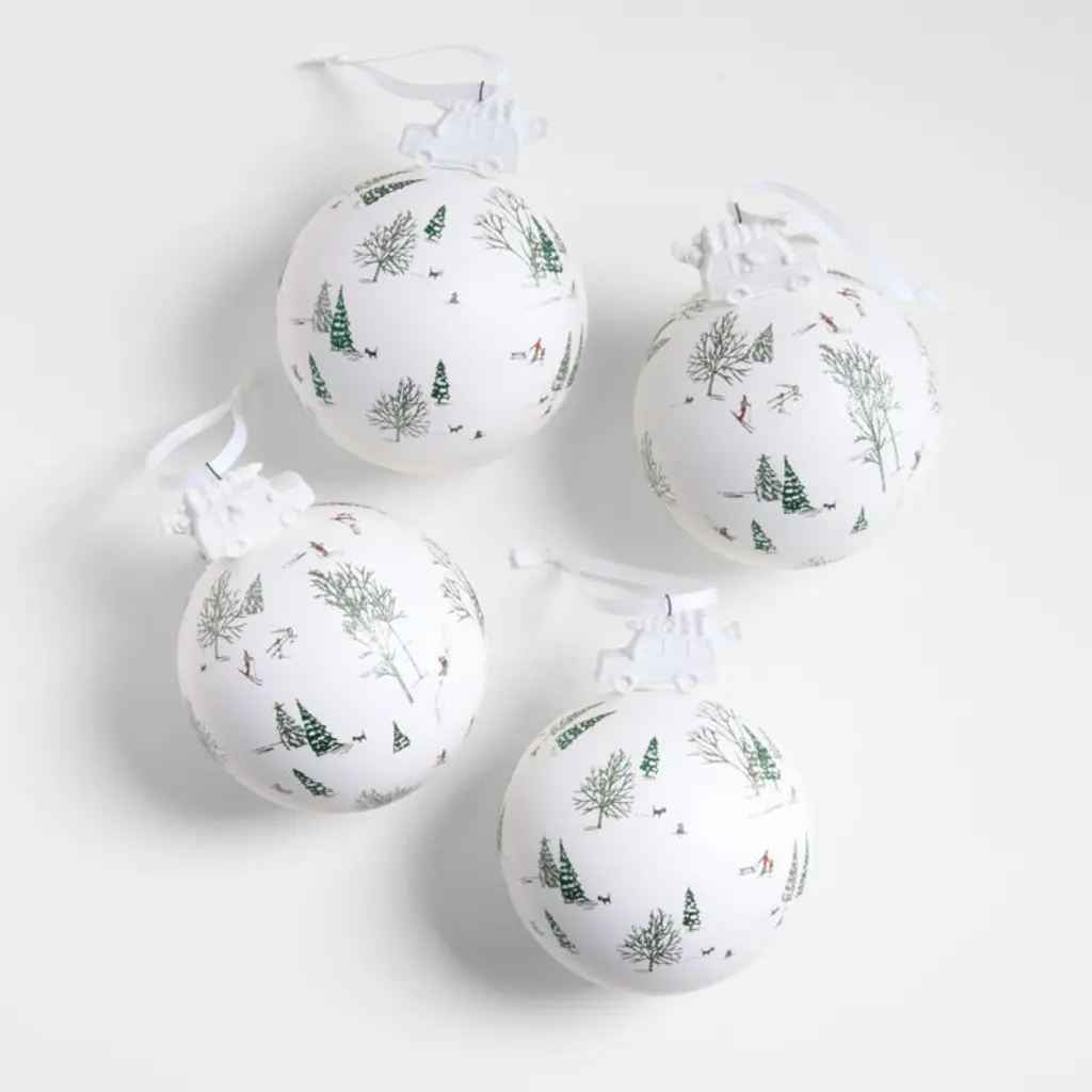 Every time you peek at our winter scene Christmas ball ornament, you'll discover a different handpainted vignette. From skiers to sledders to pups living their best winter life, each one captures the essence of a snowy holiday. Our favorite element of this Crate & Barrel exclusive is the unique decorative car carrying home a freshly cut Christmas tree perched at the top, replacing the usual hook.