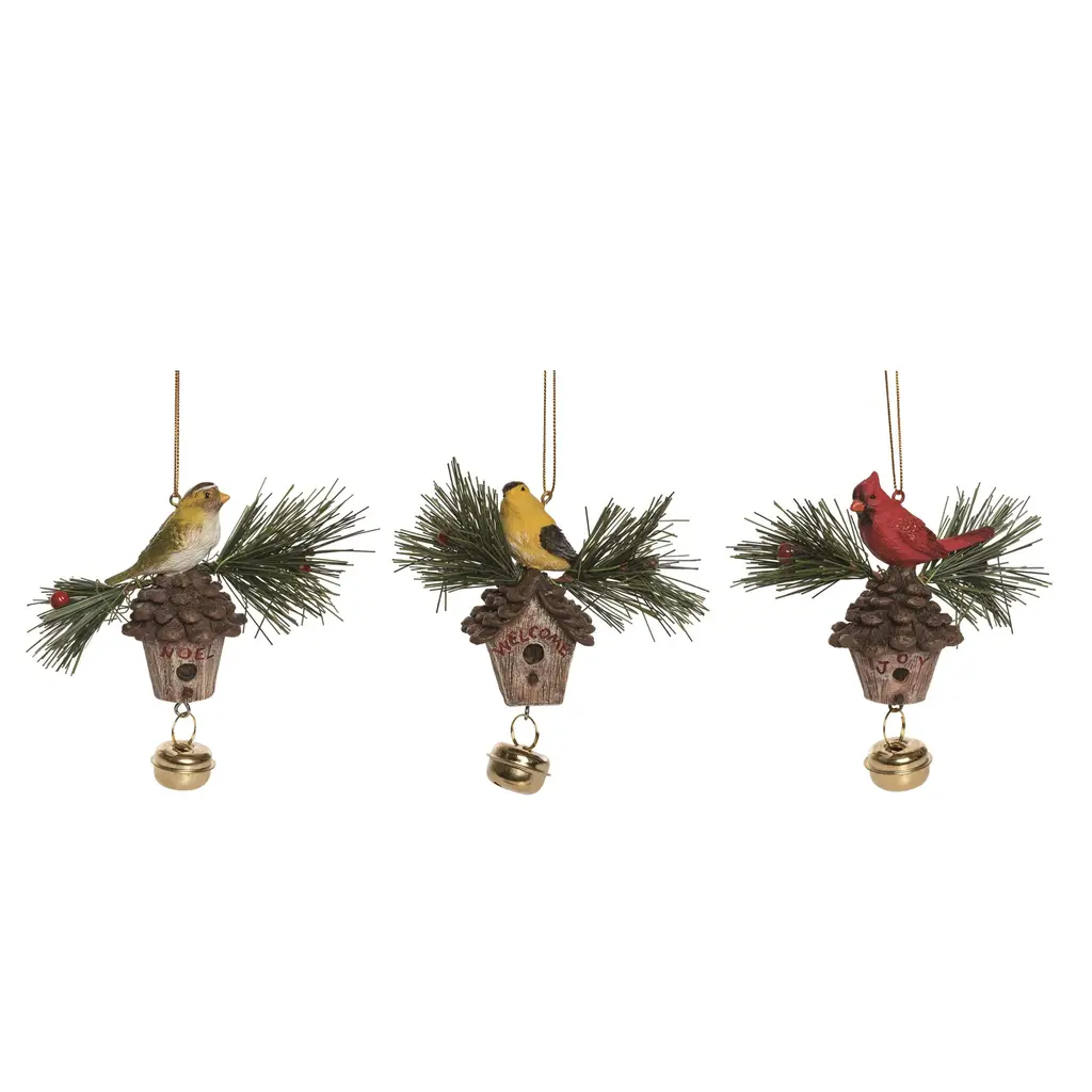 Add a woodland touch to your Christmas tree with this stunning set of Eucalyptus Wood Birdhouse Ornaments. Featuring six pieces and two assorted designs, the wintry brown and red tones paired with the beloved cardinal bird and pine accents are the perfect combination to create a memorable dipslay. The quality eucalyptus wood and plastic composition with delicate gold string hanger is sure to endure for seasons to come. Whether you're adding a touch of cheer to your home or gifting to a loved one, these ornaments will definitely bring holiday spirit to your home.