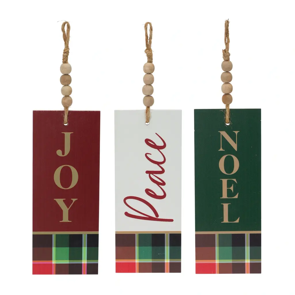 Wood Sentiment Tag Ornament (Set Of 12) - 3 X 0.25 X 8 - Multi - Wood
