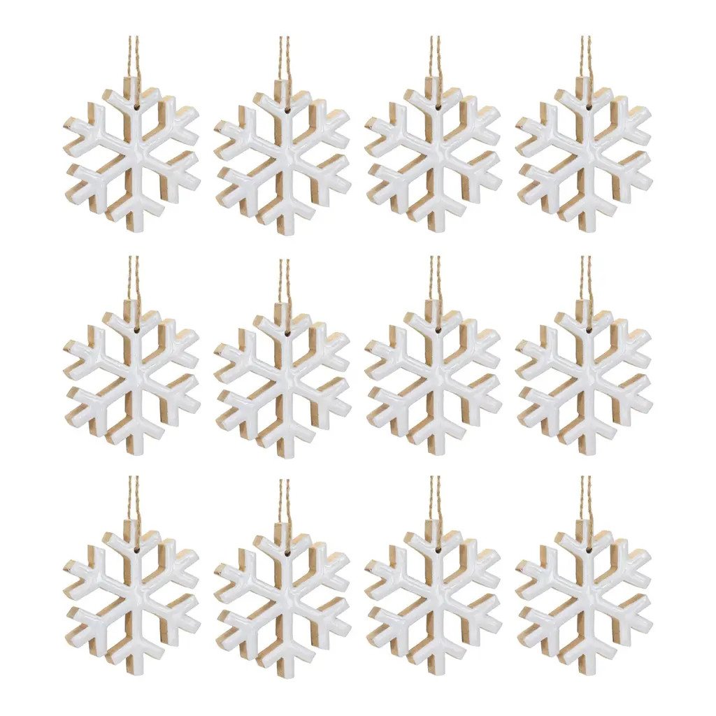 Wood Snowflake Ornament (Set Of 12) - 4" X 1.5" X 4" (L X W X H) - White