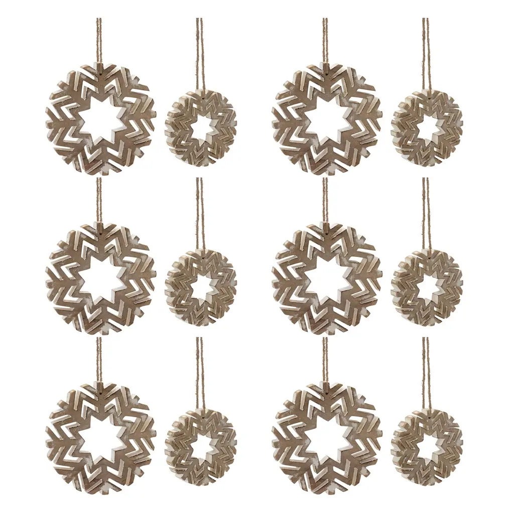 Make your holiday decor shine brighter with this Set of Wood Snowflake Ornaments! Our MDF wood snowflake creates a cozy, wintery look that will make your Christmas tree sparkle. With a festive red finish and jute hanger, these ornaments are perfect for any holiday decor. Get your set of ornaments today and bring the winter wonderland to life! Whether you're adding a touch of cheer to your tree or gifting to a loved one, these ornaments will definitely bring smiles to your home.