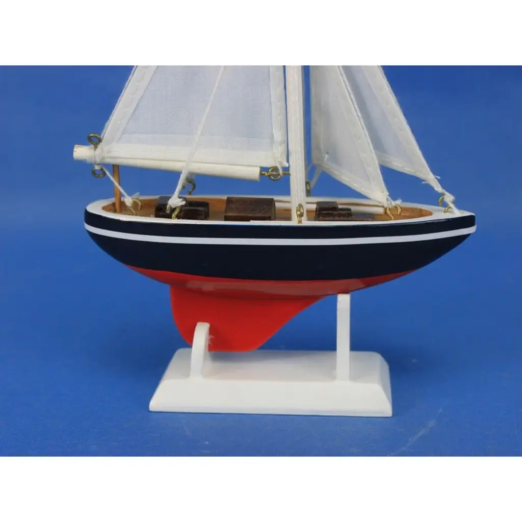 Wooden Endeavour Model Sailboat Christmas Ornament 9" - 5" L X 1.5" W X 9" H - Red/black