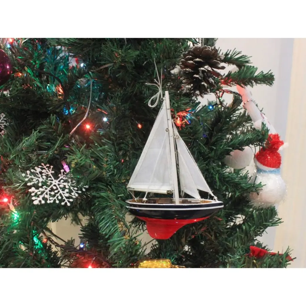 Specification:Description:Gather 'round and celebrate the holidays with this Wooden Endeavour Sailboat Christmas Ornament. Perfectly combining the warmth of the holiday season and the nautical sea-faring lifestyle, this sailboat decoration lights up any tree and adds the final nautical touch to your Christmas needs. This big and bold nautical themed Christmas tree ornament easily hangs and is sure to stand out on this year's Christmas tree.