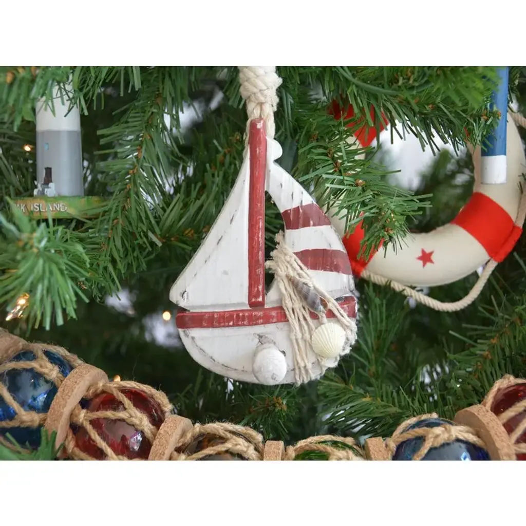 Wooden Rustic Blue Sailboat Model Christmas Tree Ornament - 4" L X 1" W X 6" H - White/blue