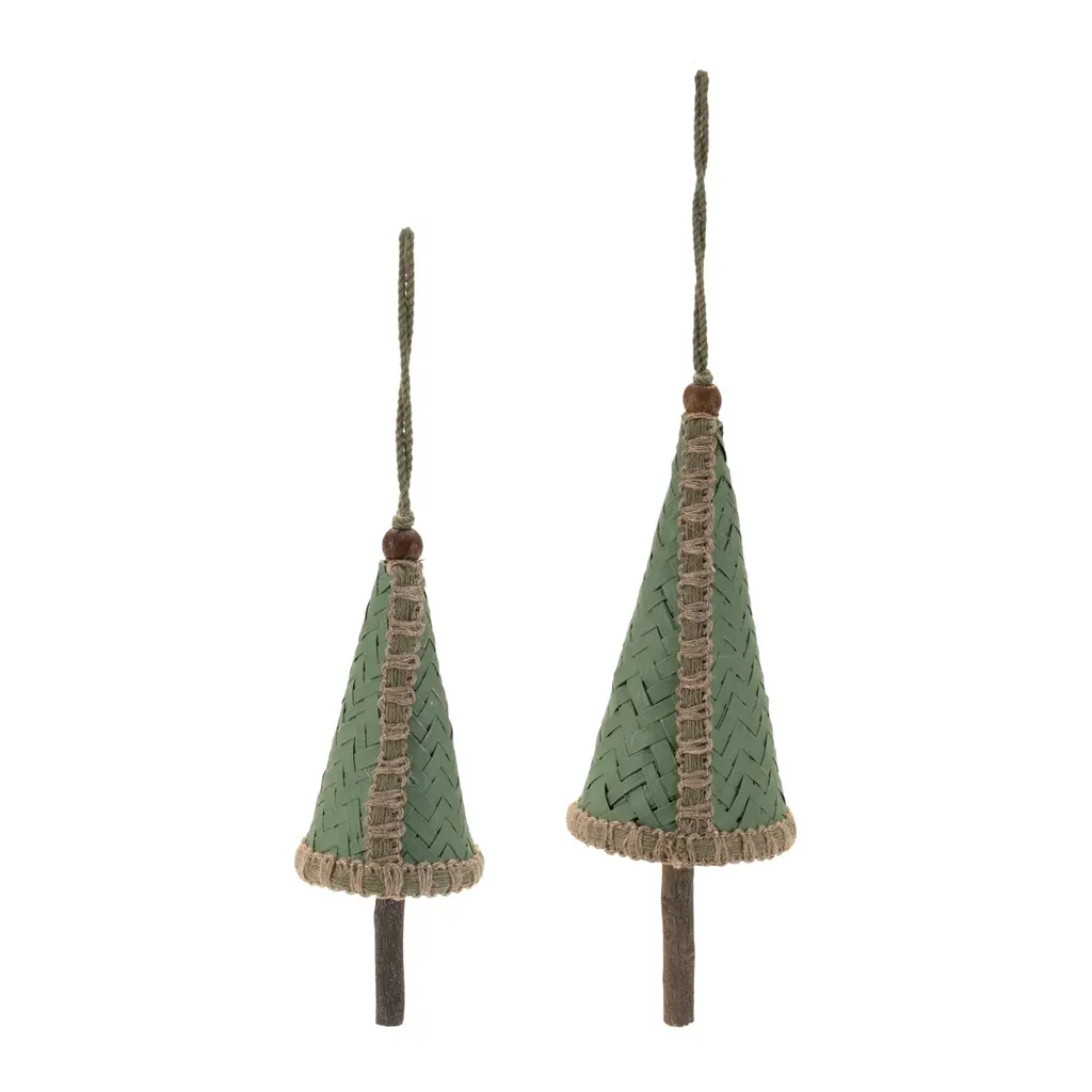 Woven Bamboo Pine Tree Ornament, Set Of 4
