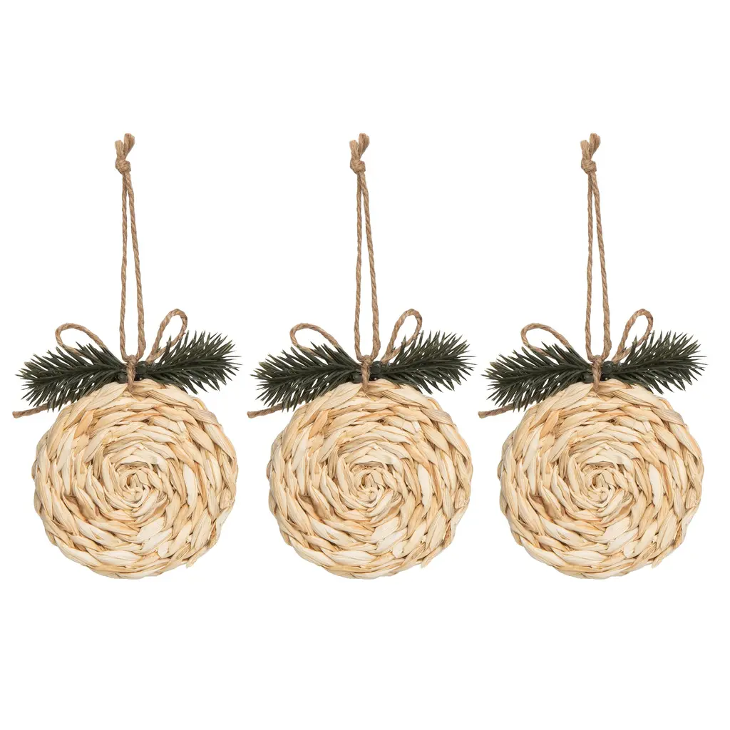 Bring a natural, rustic charm to your holiday décor with these Woven Bamboo Pine Tree Ornaments. Designed in festive green tones with a natural bamboo finish, these ornaments blend modern cone-shaped pine trees with traditional ball elements, creating a perfect balance of contemporary and farmhouse style. The jute string hanger enhances their organic appeal, making them ideal for Christmas trees, wreaths, or garlands. A wonderful way to add a warm, handcrafted feel to your holiday display or a thoughtful gift for loved ones who appreciate natural textures and cozy aesthetics.