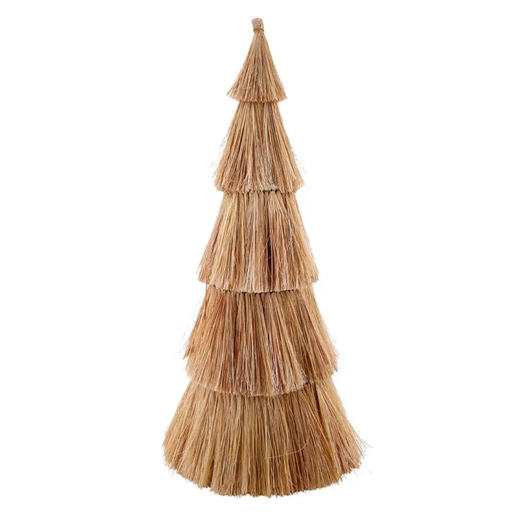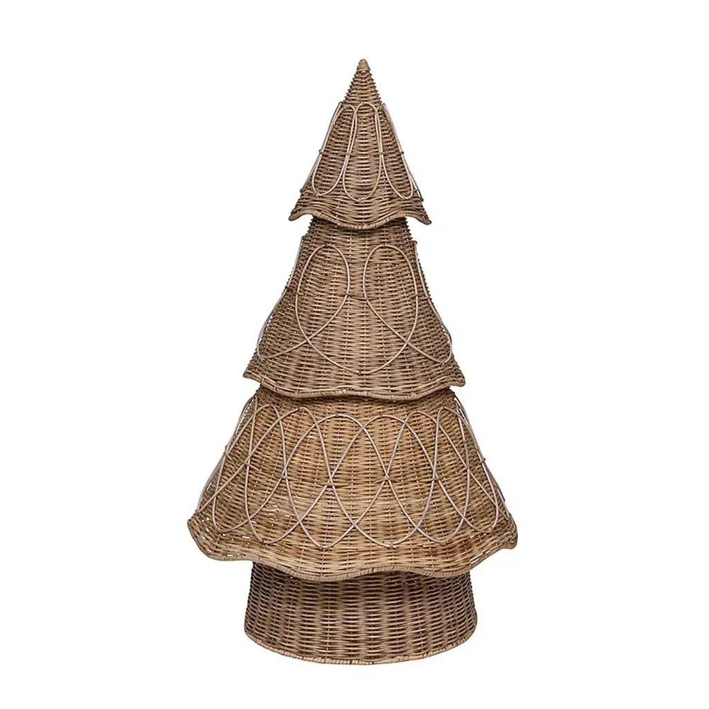 Woven Wicker Christmas Tree Decorations 17" Beige And Brown Set Of 2 - Beige - 1.5 Foot