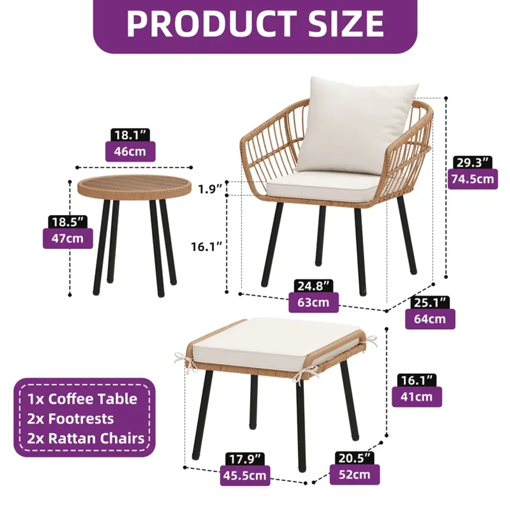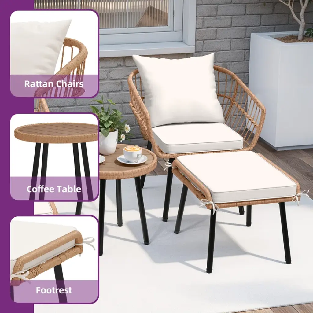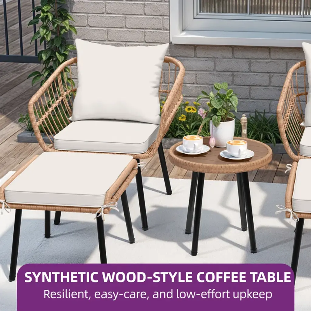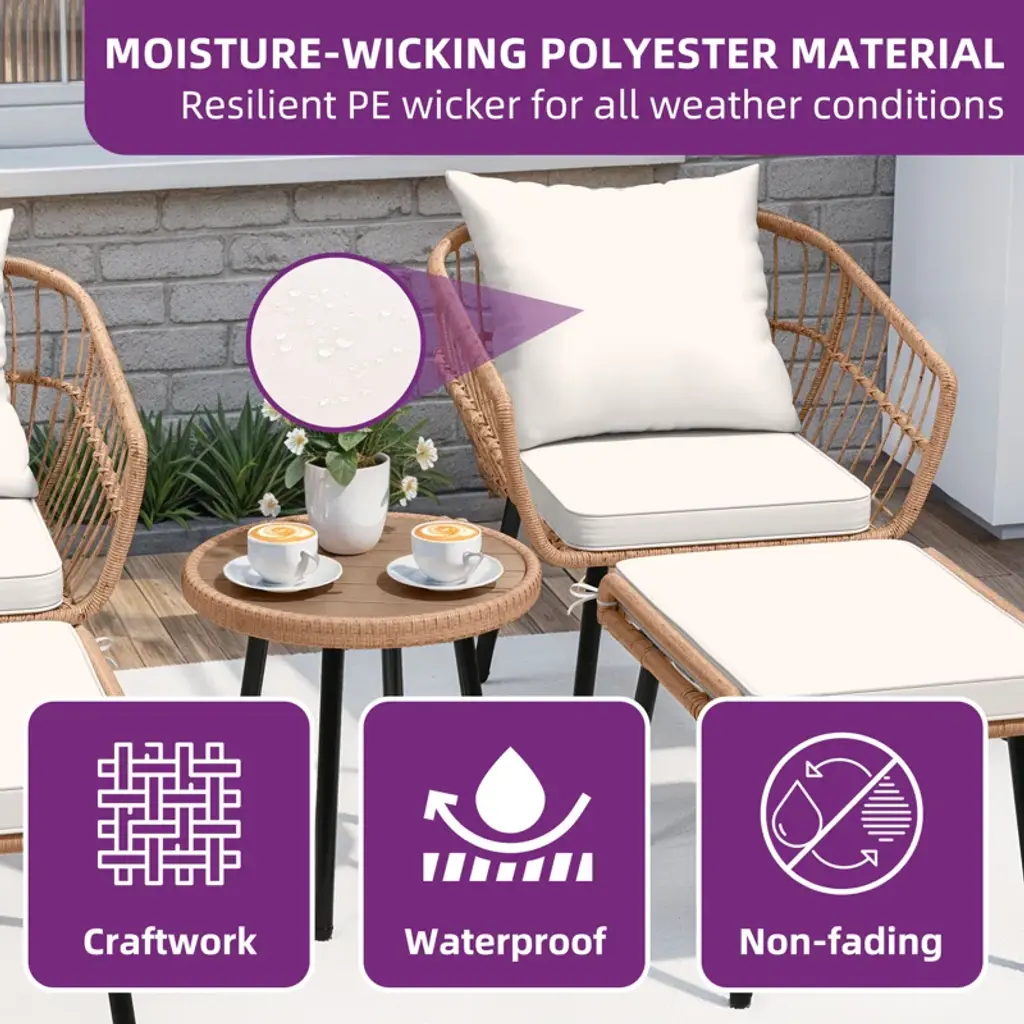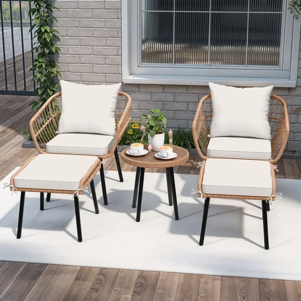 5 Pieces Wicker Outdoor Patio Bistro Set With Ottomans And Side Table