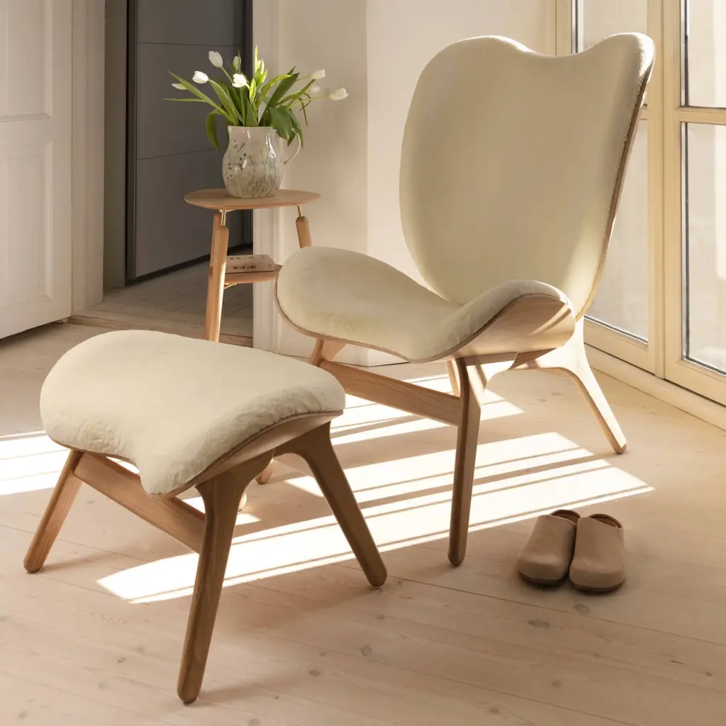 Anders Klem's organically contoured ottoman extends the expressly comfortable premise of his similarly curved companion armchair. A Conversation Piece's elements readily adapt to the footrest shape with the same wood shell construction and the collection's unusually extensive range of colorful upholstery options. Emphasizing the surface grain, the oak base comes in a choice of natural, dark and blackened finishes.