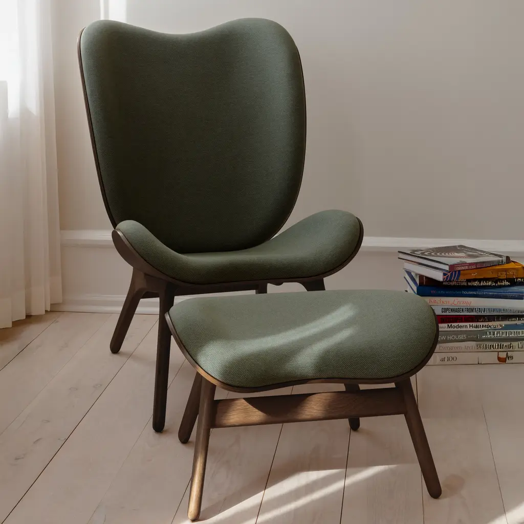 Anders Klem's organically contoured ottoman extends the expressly comfortable premise of his similarly curved companion armchair. A Conversation Piece's elements readily adapt to the footrest shape with the same wood shell construction and the collection's unusually extensive range of colorful upholstery options. Emphasizing the surface grain, the oak base comes in a choice of natural, dark and blackened finishes.
