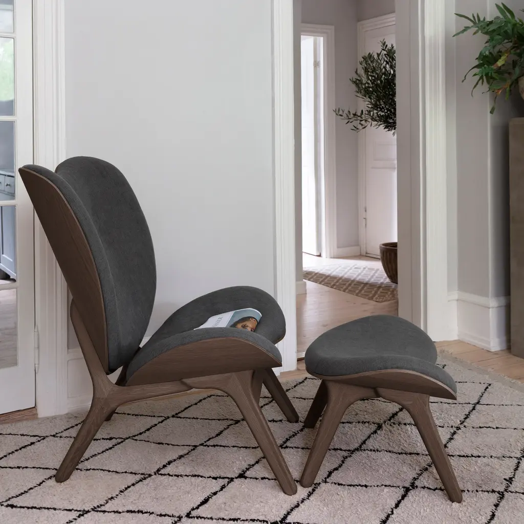 Anders Klem's organically contoured ottoman extends the expressly comfortable premise of his similarly curved companion armchair. A Conversation Piece's elements readily adapt to the footrest shape with the same wood shell construction and the collection's unusually extensive range of colorful upholstery options. Emphasizing the surface grain, the oak base comes in a choice of natural, dark and blackened finishes.